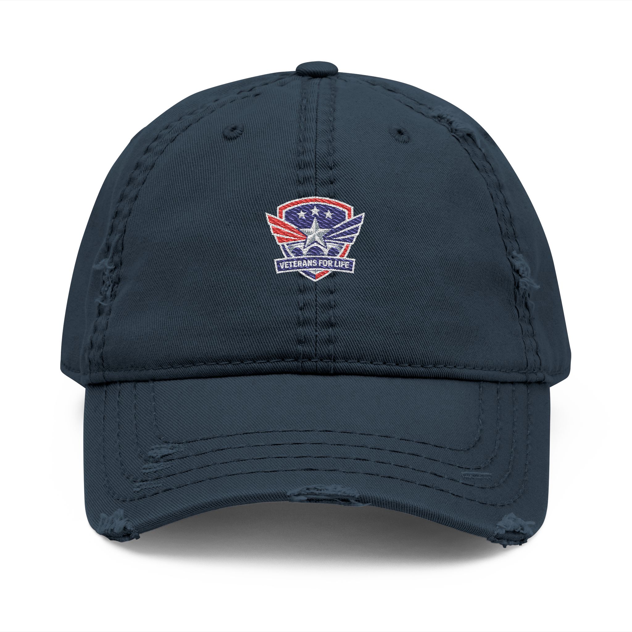 Distressed Embroidered Dad Hat – American Shield Flag Patch