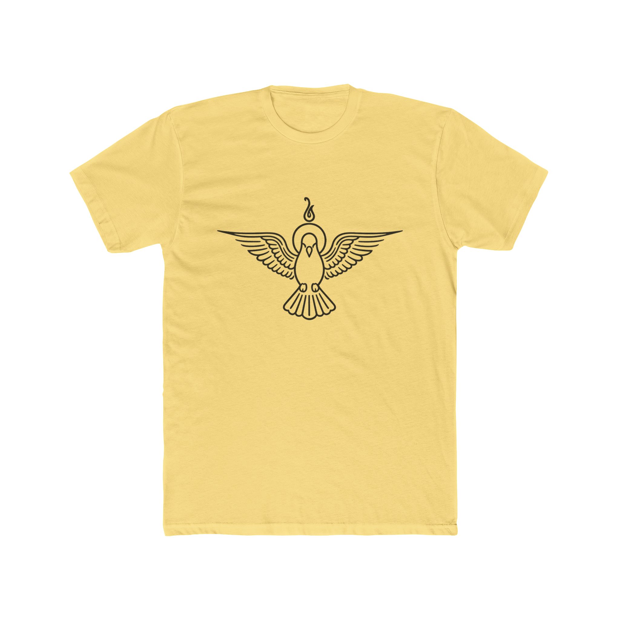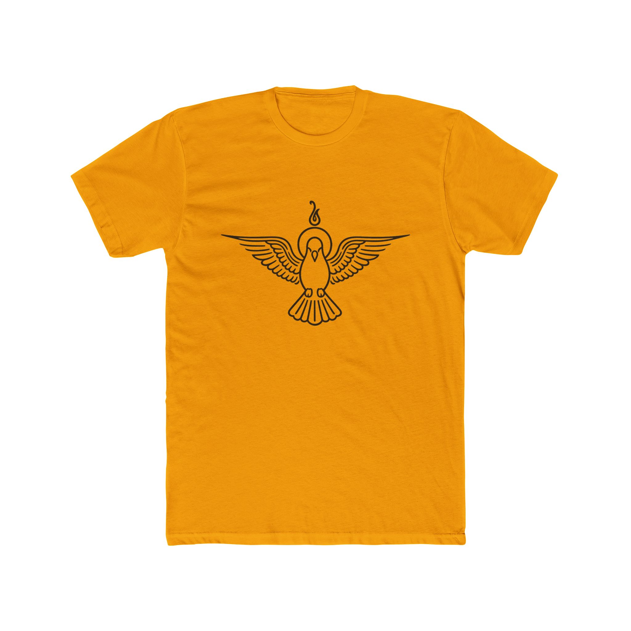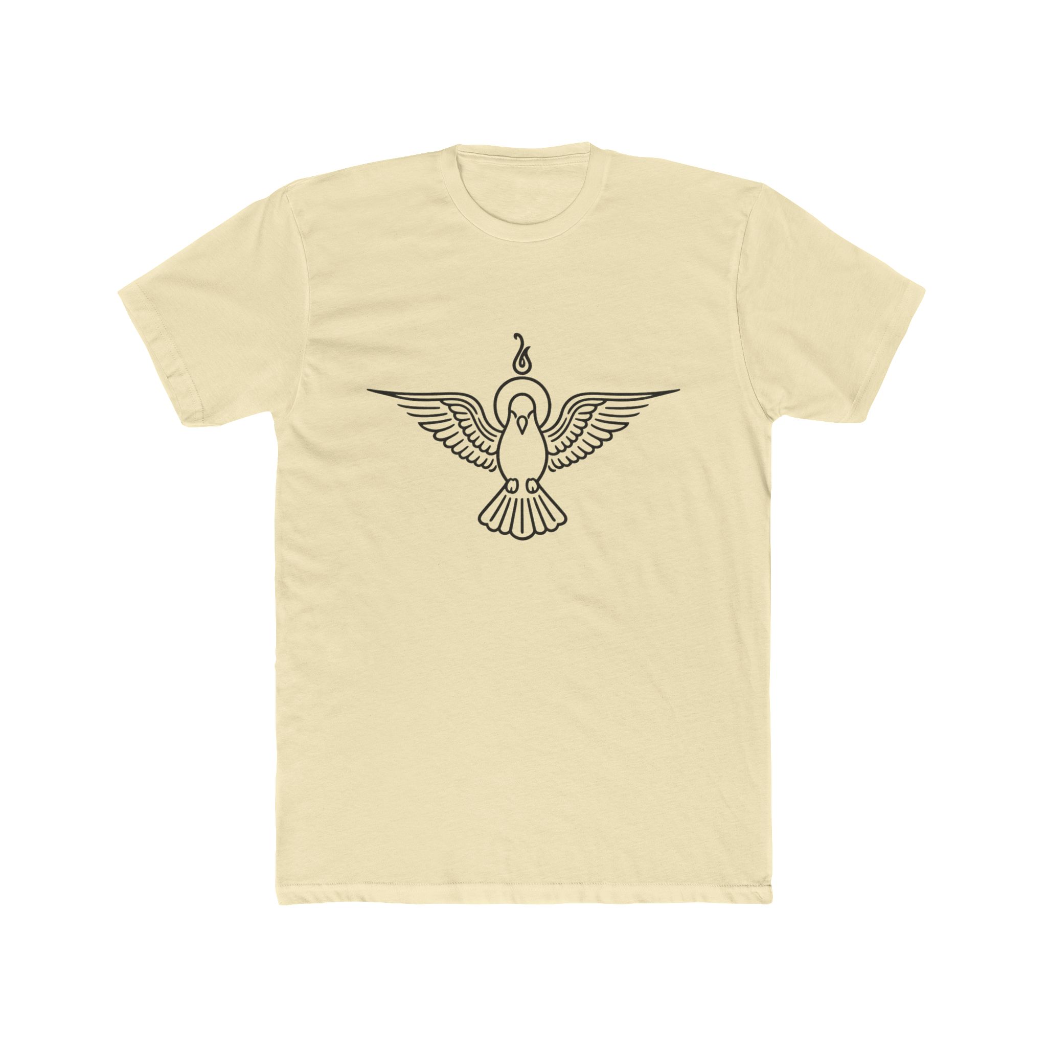 Lightweight and quietly expressive, this cotton crew tee wears a single-line dove emblem across the chest — wings spread, a small flame rising above. It reads like a personal symbol: calm strength, thoughtful rebellion, or a reminder to stay centered. The soft 4.3 oz fabric drapes easily for all-season layering or solo wear. Subtle details — ribbed collar, shoulder tape and side seams — keep the fit tidy wash after wash. The minimalist motif pairs with worn denim or a blazer when you want to be understated but intentional. Made to meet EU REACH standards and backed by a two-year EU warranty, this tee blends mindful design with everyday durability.