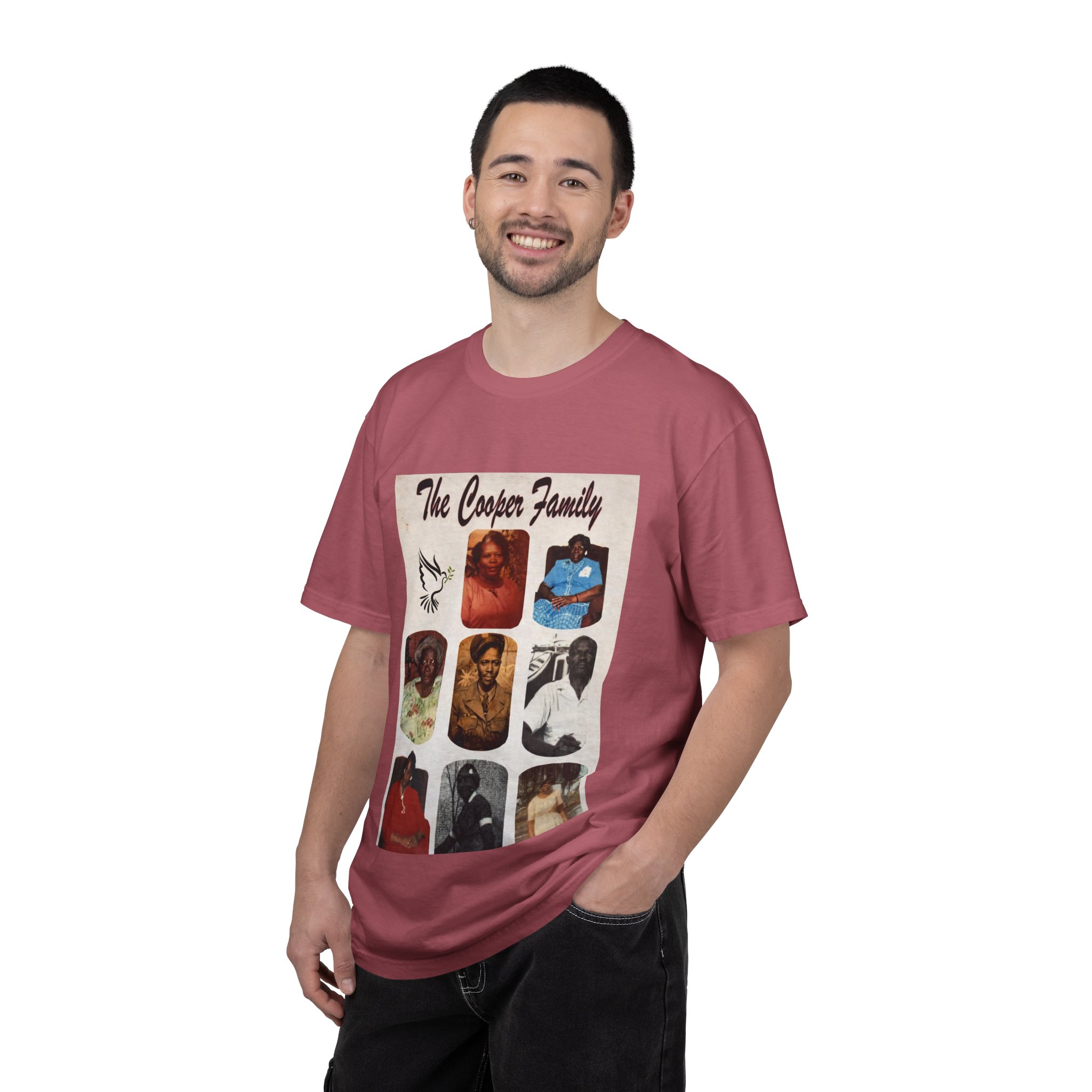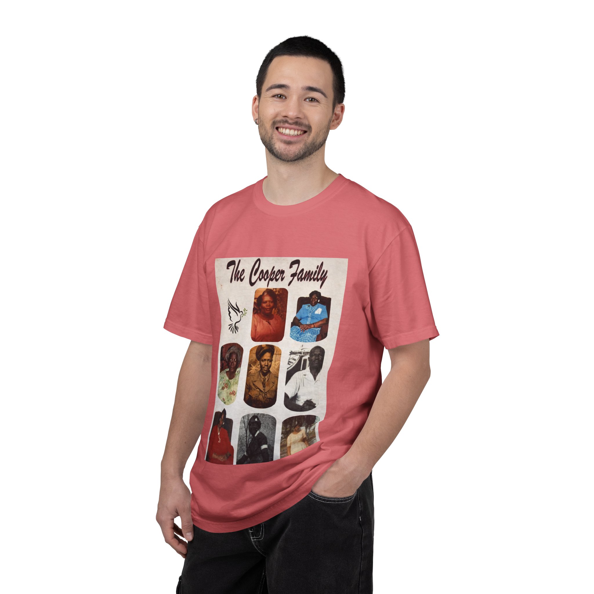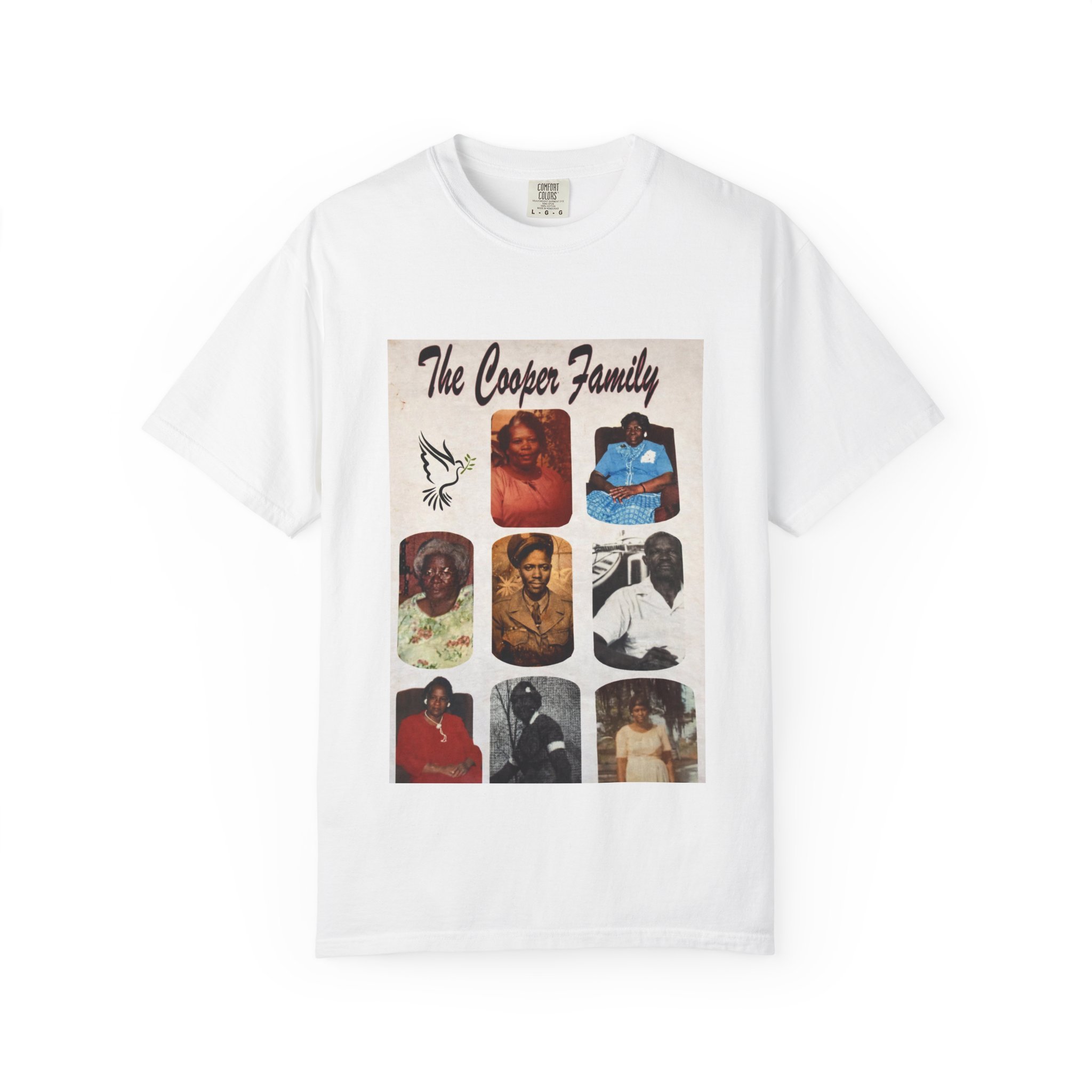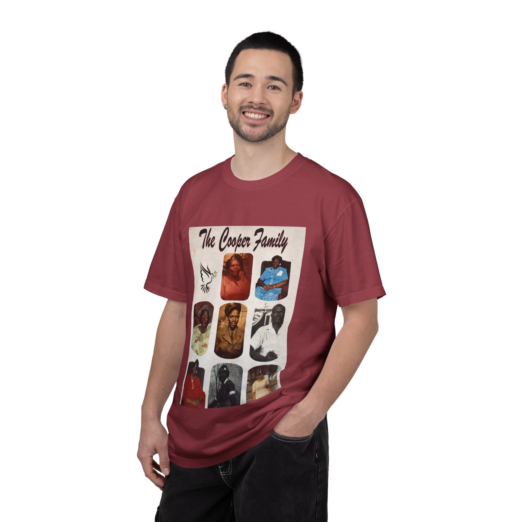 This heavyweight garment-dyed tee carries a quiet, personal warmth — a collage of family photos and handwritten script printed on soft, lived-in cotton. It feels like a worn photograph brought to life: slightly faded colors, gentle texture, and a relaxed fit that invites you to fold your hands into pockets and remember. Wear it to family gatherings, reunions, or on days when you want a comforting, nostalgic layer. The sewn-in label and sturdy double-needle stitching mean it stands up to repeat wear and washes, while the garment-dyed finish gives each shirt a subtle, unique tone that settles into the fabric like a memory.