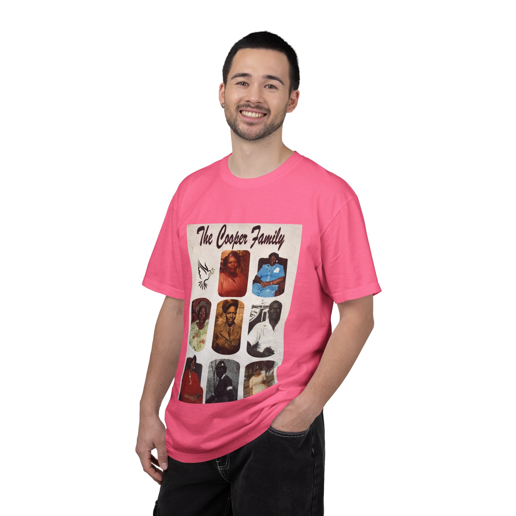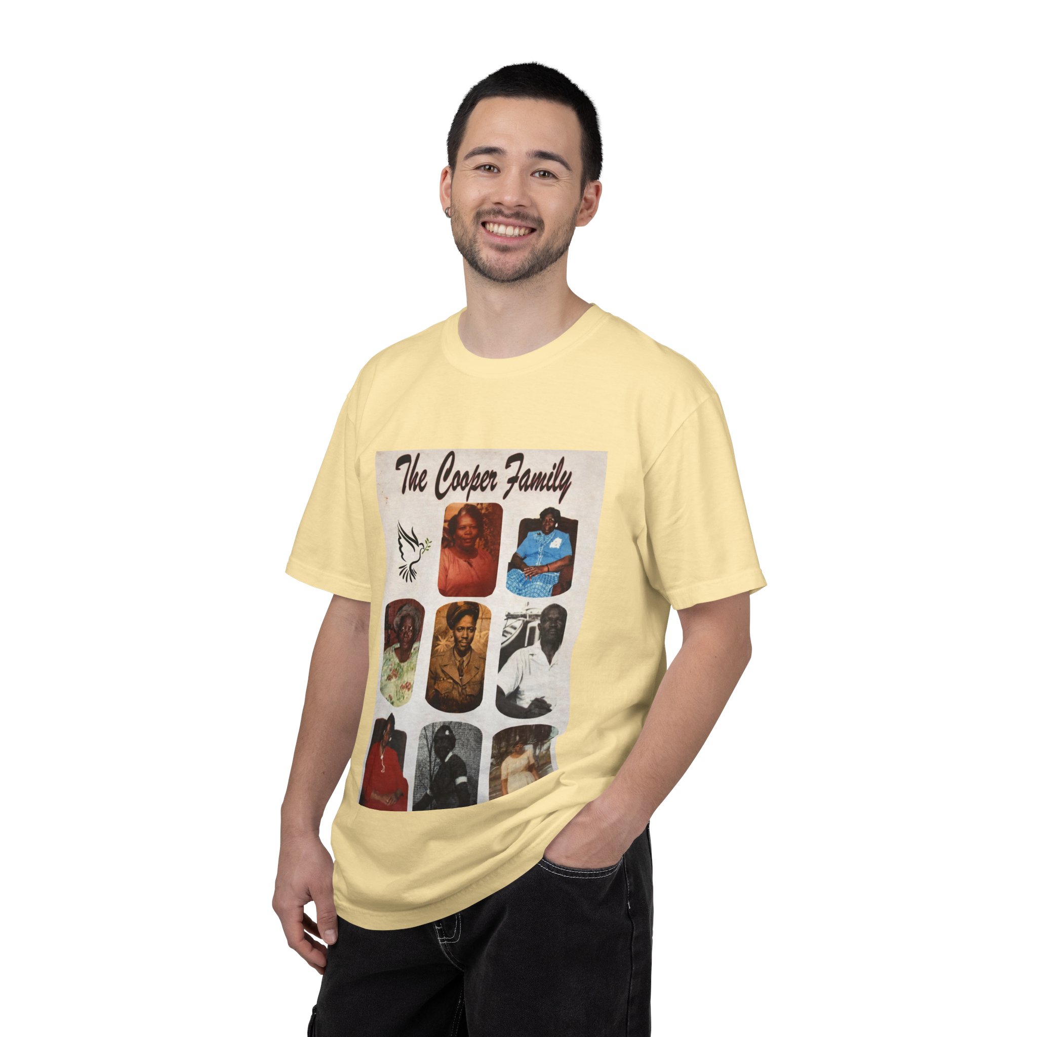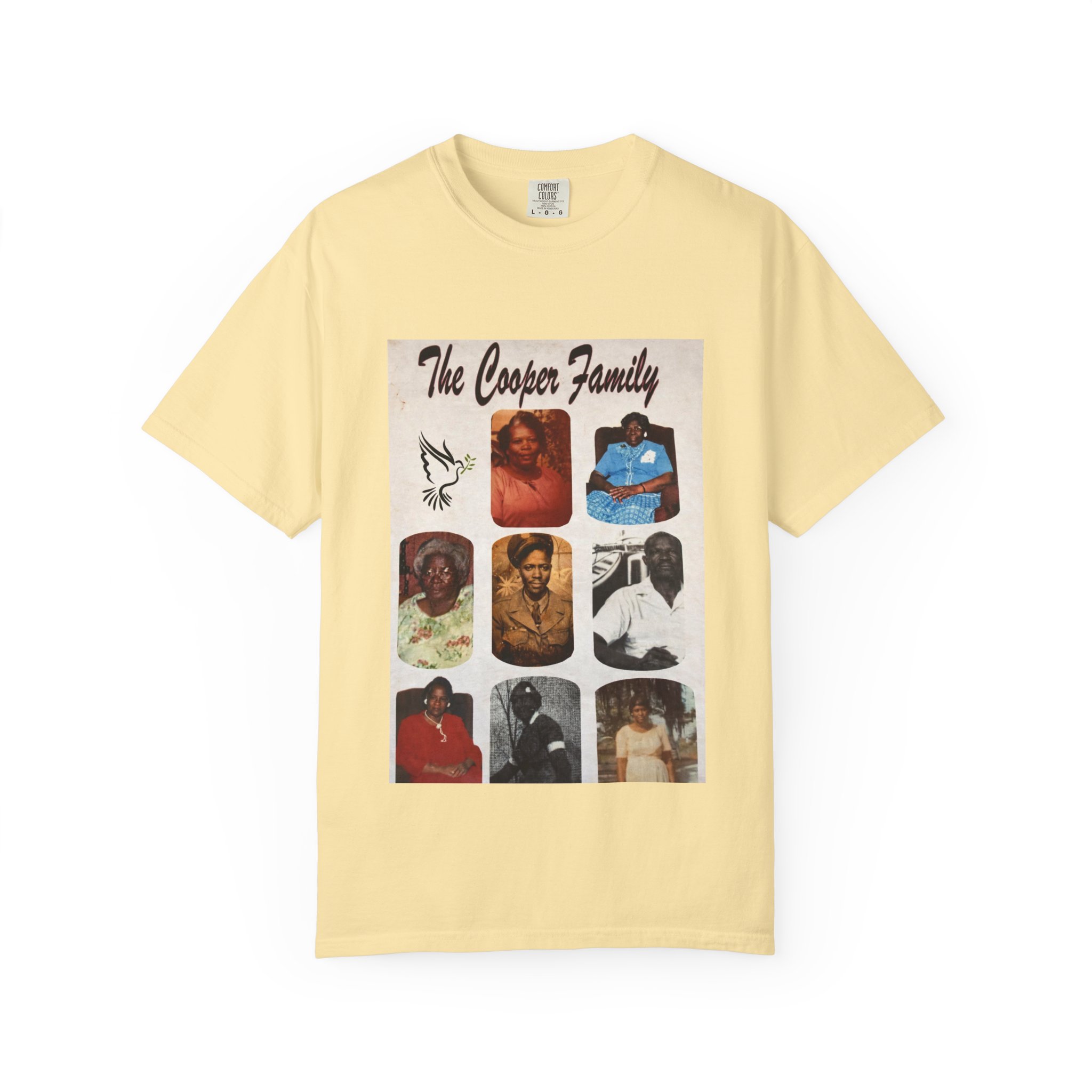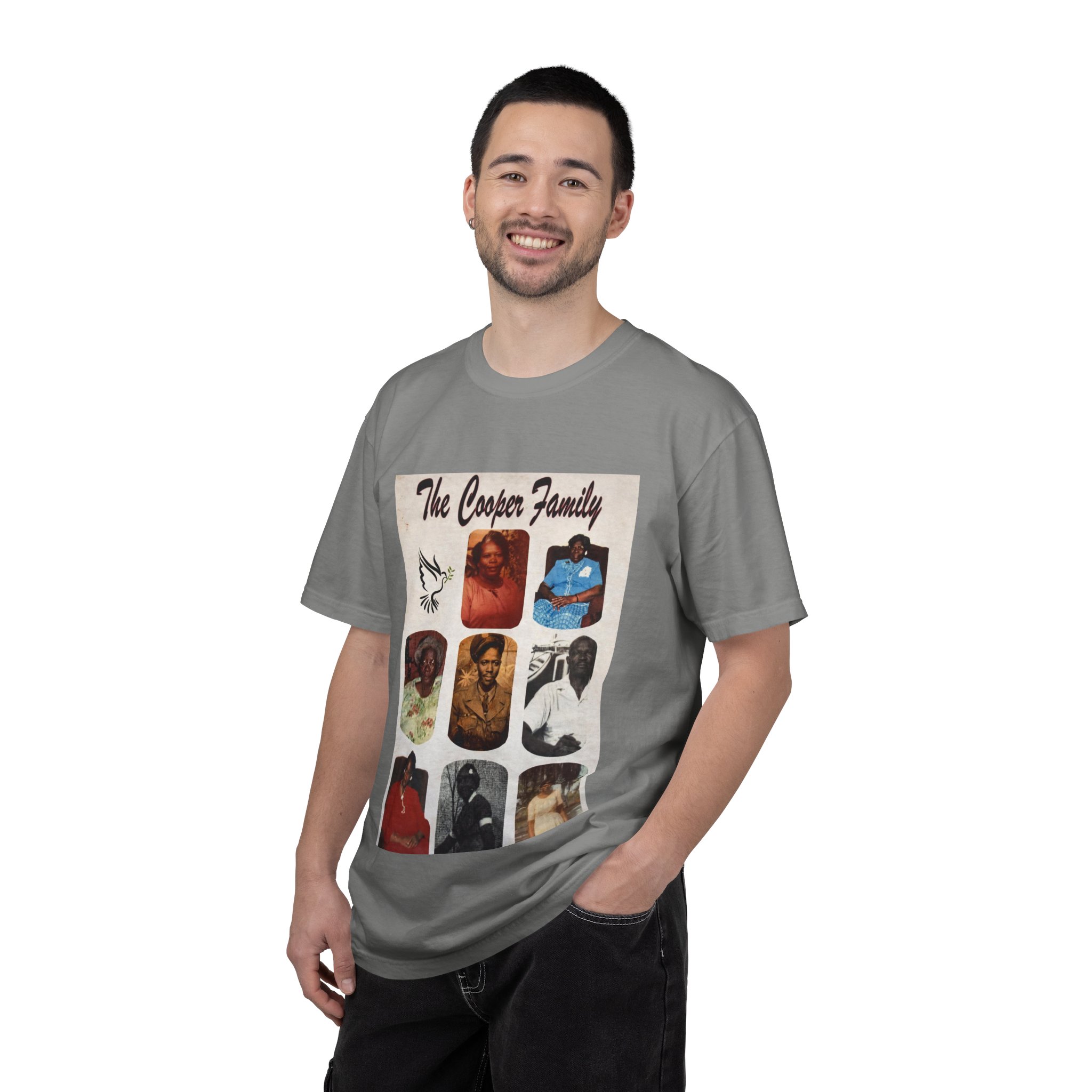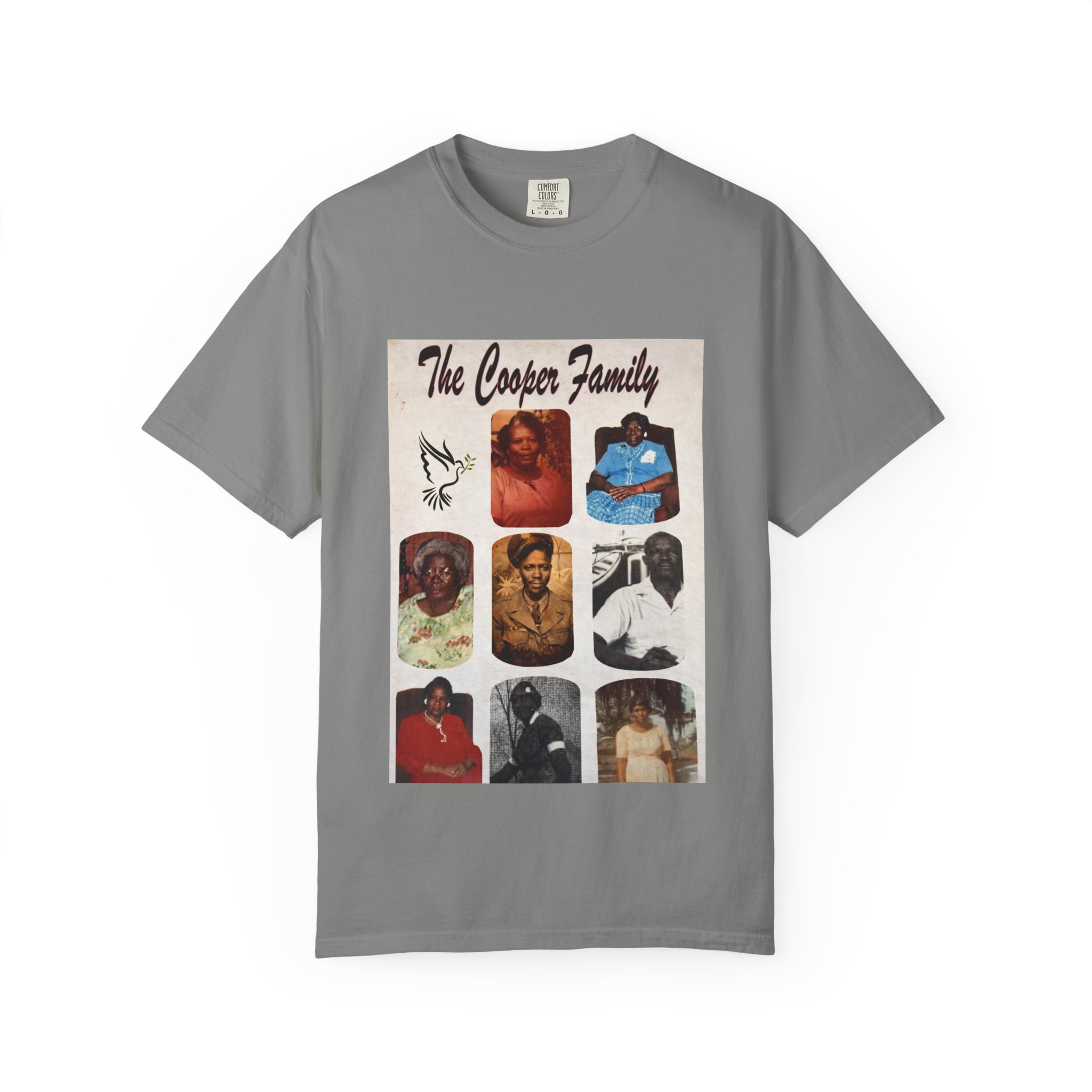 This heavyweight garment-dyed tee carries a quiet, personal warmth — a collage of family photos and handwritten script printed on soft, lived-in cotton. It feels like a worn photograph brought to life: slightly faded colors, gentle texture, and a relaxed fit that invites you to fold your hands into pockets and remember. Wear it to family gatherings, reunions, or on days when you want a comforting, nostalgic layer. The sewn-in label and sturdy double-needle stitching mean it stands up to repeat wear and washes, while the garment-dyed finish gives each shirt a subtle, unique tone that settles into the fabric like a memory.