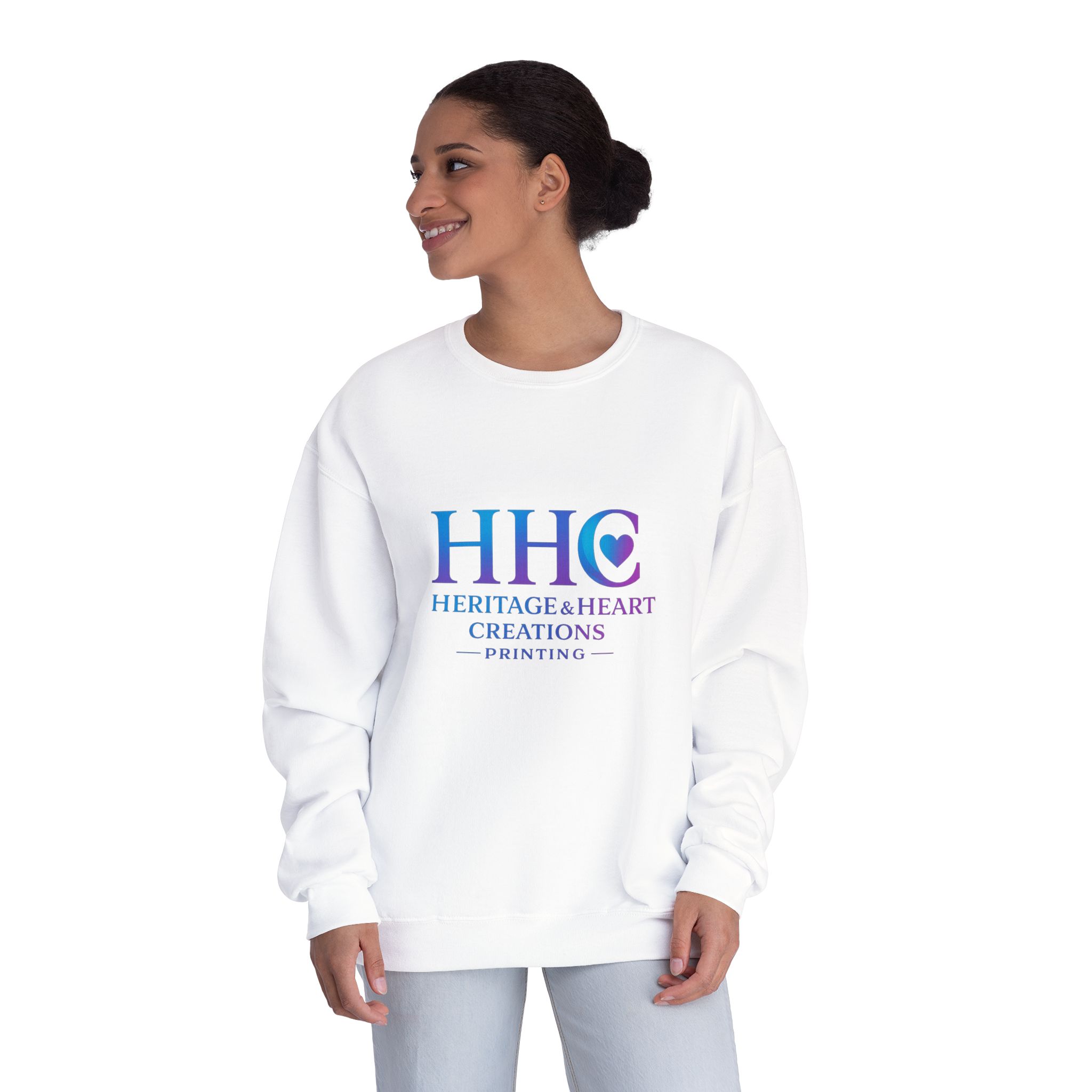 This soft, medium-weight crewneck settles in like a trusted companion. The clean white canvas puts your focus on the understated logo across the chest — a calm blend of blue and violet that reads approachable and quietly confident. Wear it on slow mornings with coffee, at community events where you want to look put-together without trying too hard, or layered under a coat for cool evenings. The regular fit and ribbed cuffs hold shape through movement, and the tear-away label keeps things comfortable against your skin. It’s the kind of sweatshirt that moves with you: steady, reliable, and effortless.