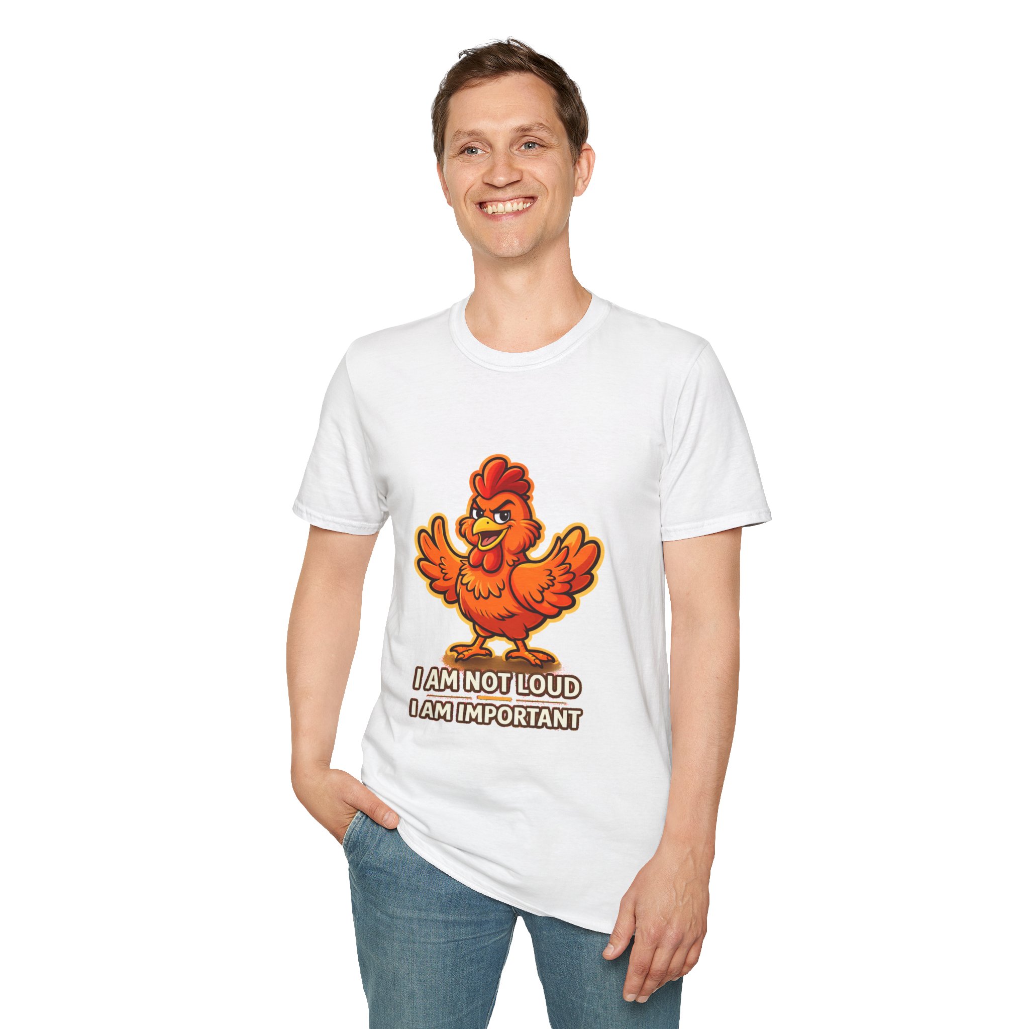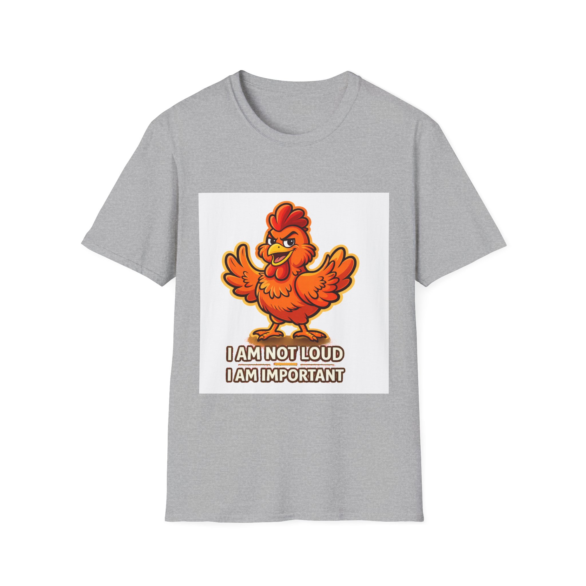 This lightweight cotton tee carries a bright, cheeky chicken illustration and the bold line: “I am not loud I am important.” It’s built for everyday wear — soft, breathable, and made to hold its shape through repeated washes. The playful design sits centered on the chest, bringing a touch of humor to casual mornings, backyard gatherings, or relaxed weekend errands. Wear it solo or layer under a jacket; the crisp print and clean crew neckline make it an easy statement piece that reads like a wink and a whole lot of confidence.