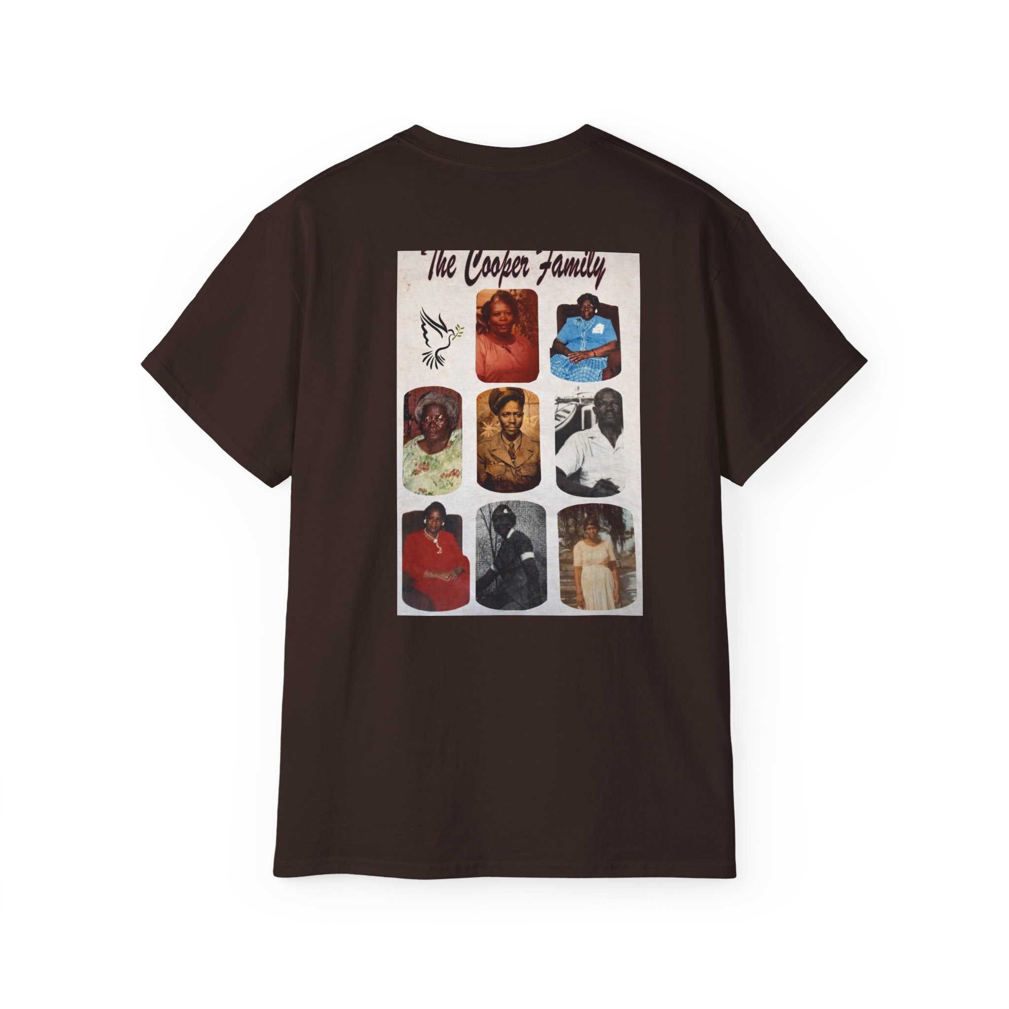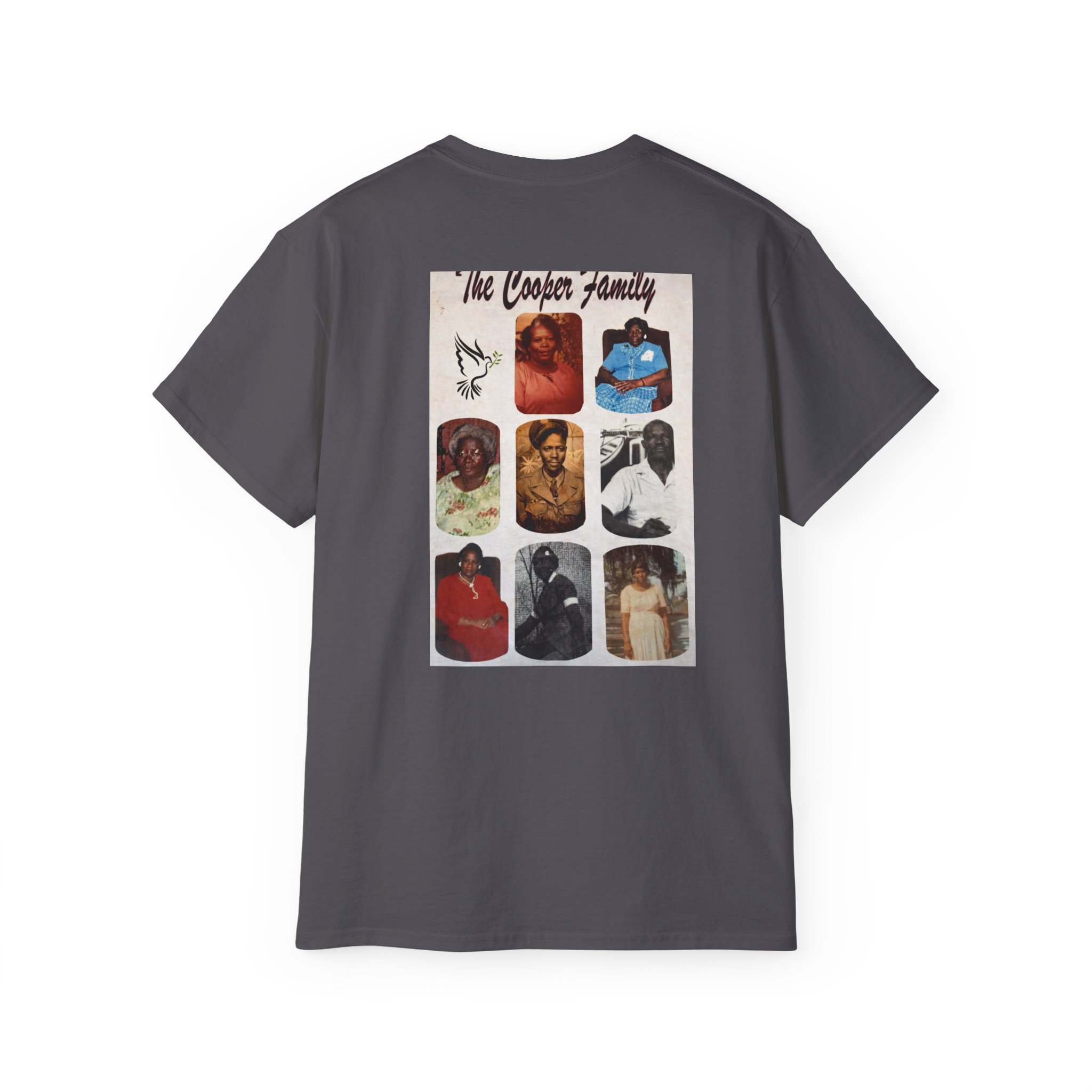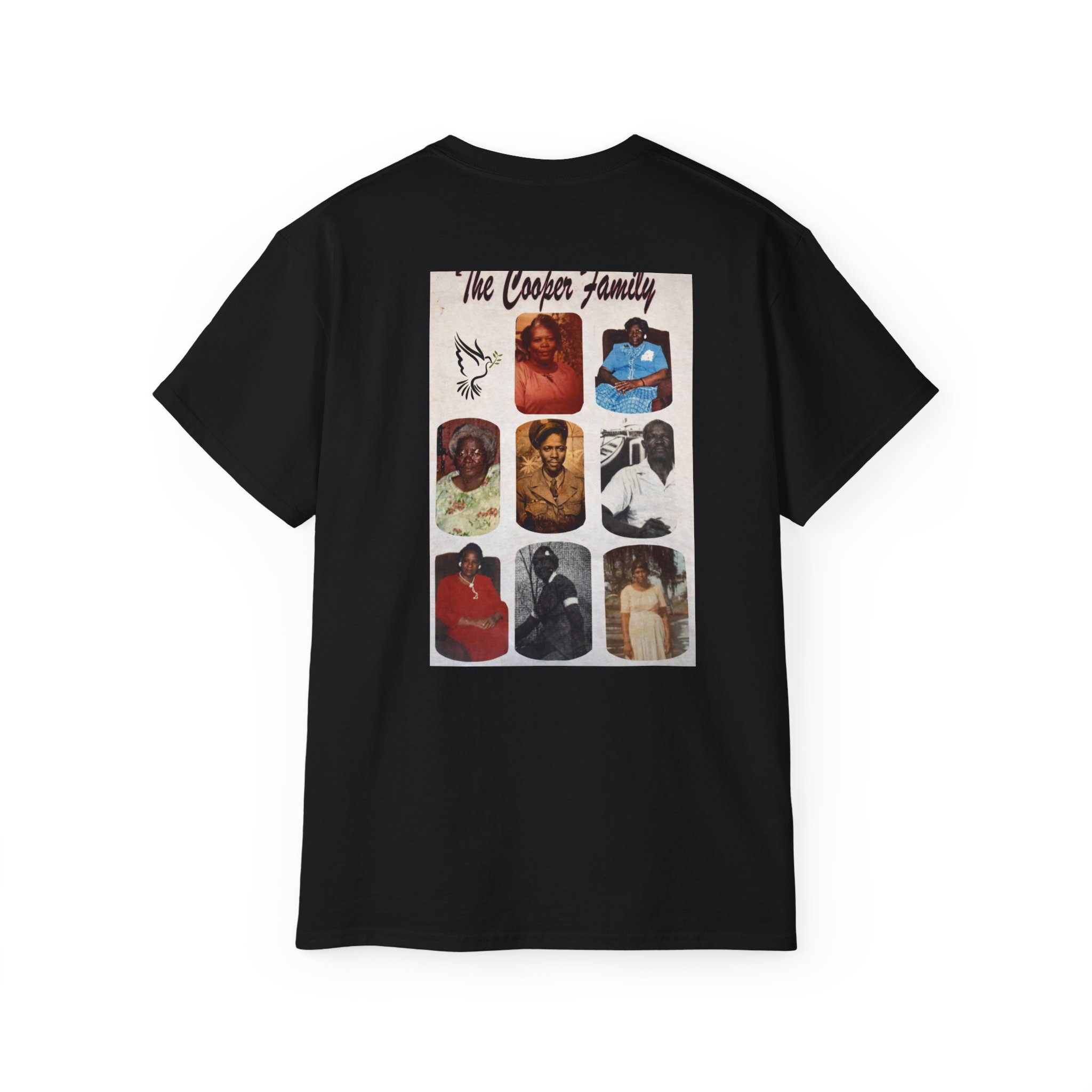 This design honors the Cooper family and the generations that helped shape its story. The back of the shirt features a collection of cherished family photographs representing loved ones whose lives, memories, and values continue to bring the family together.