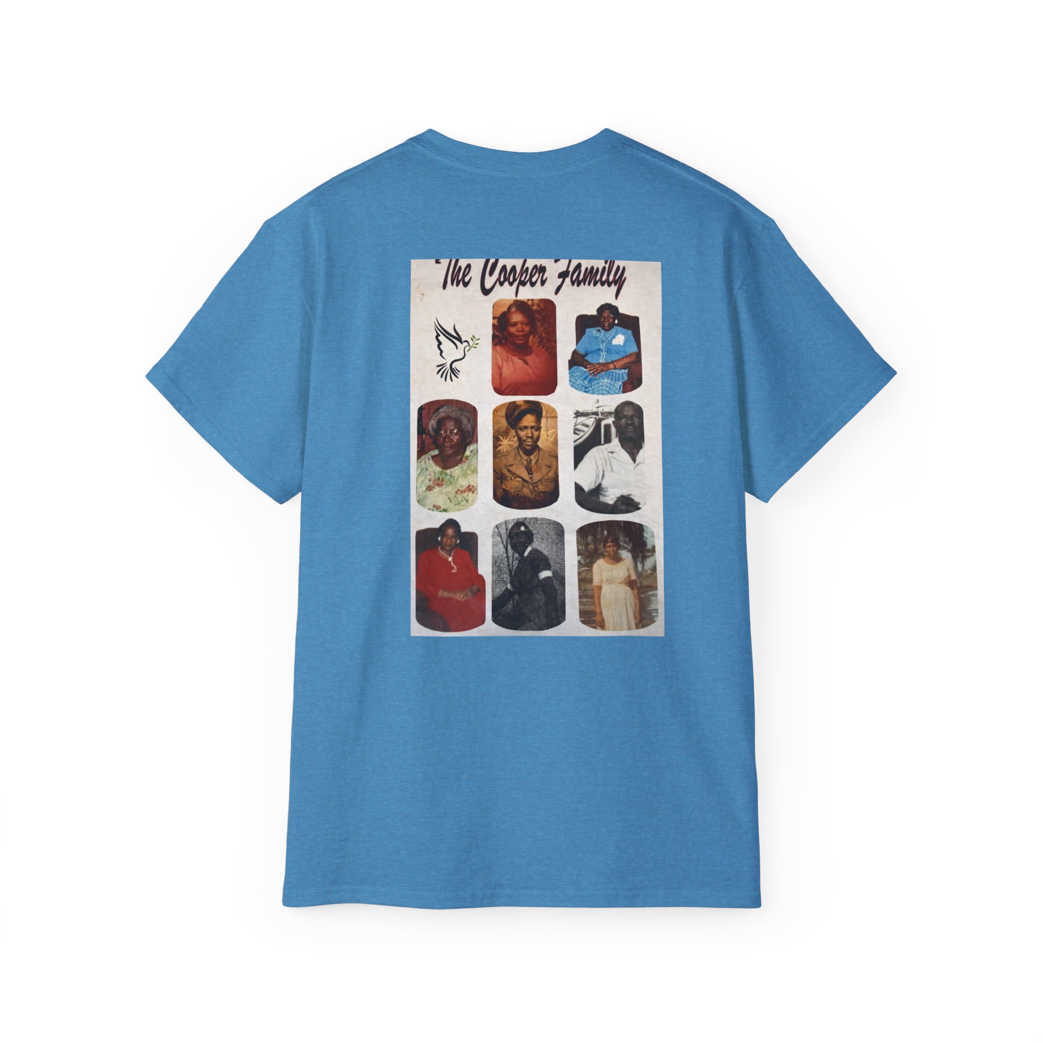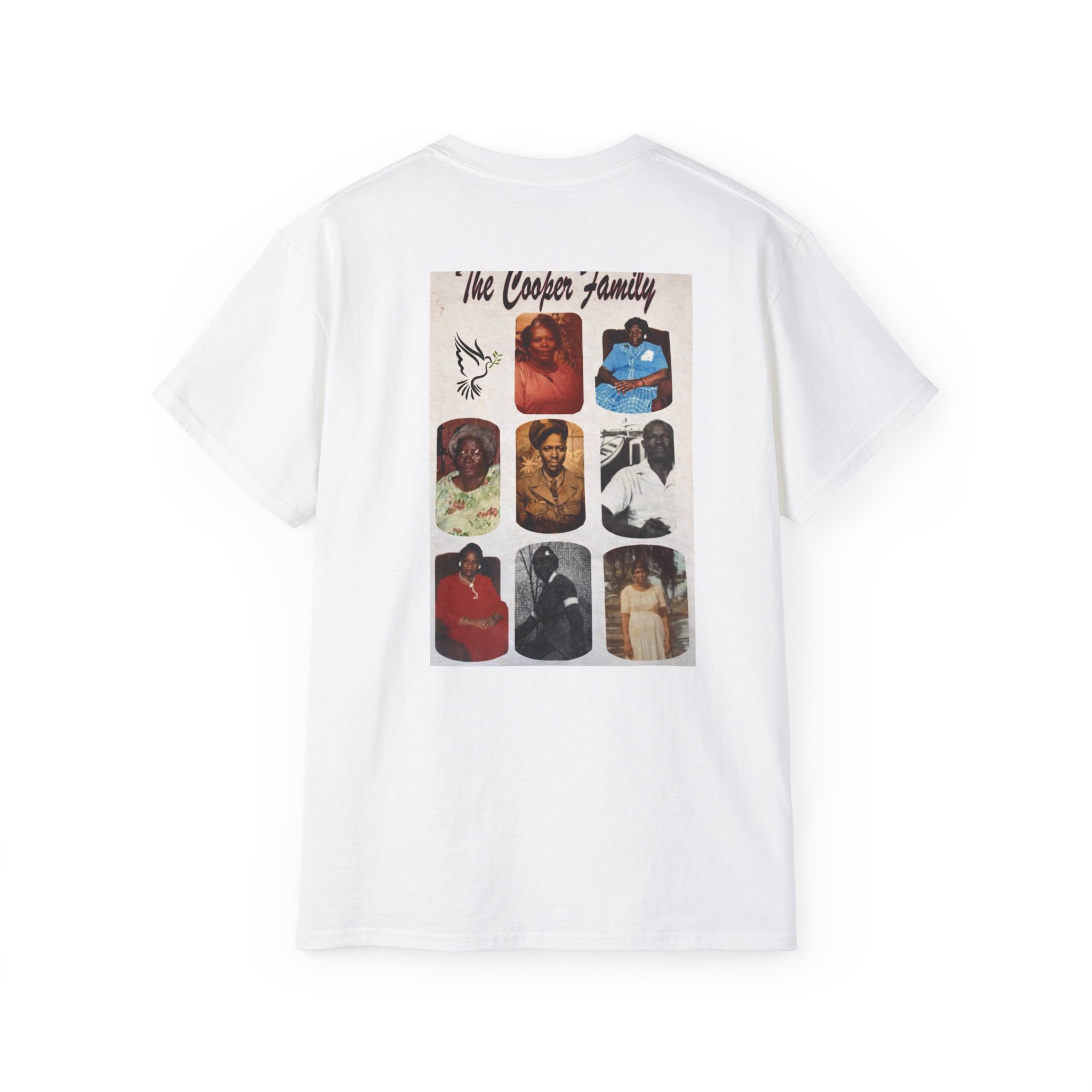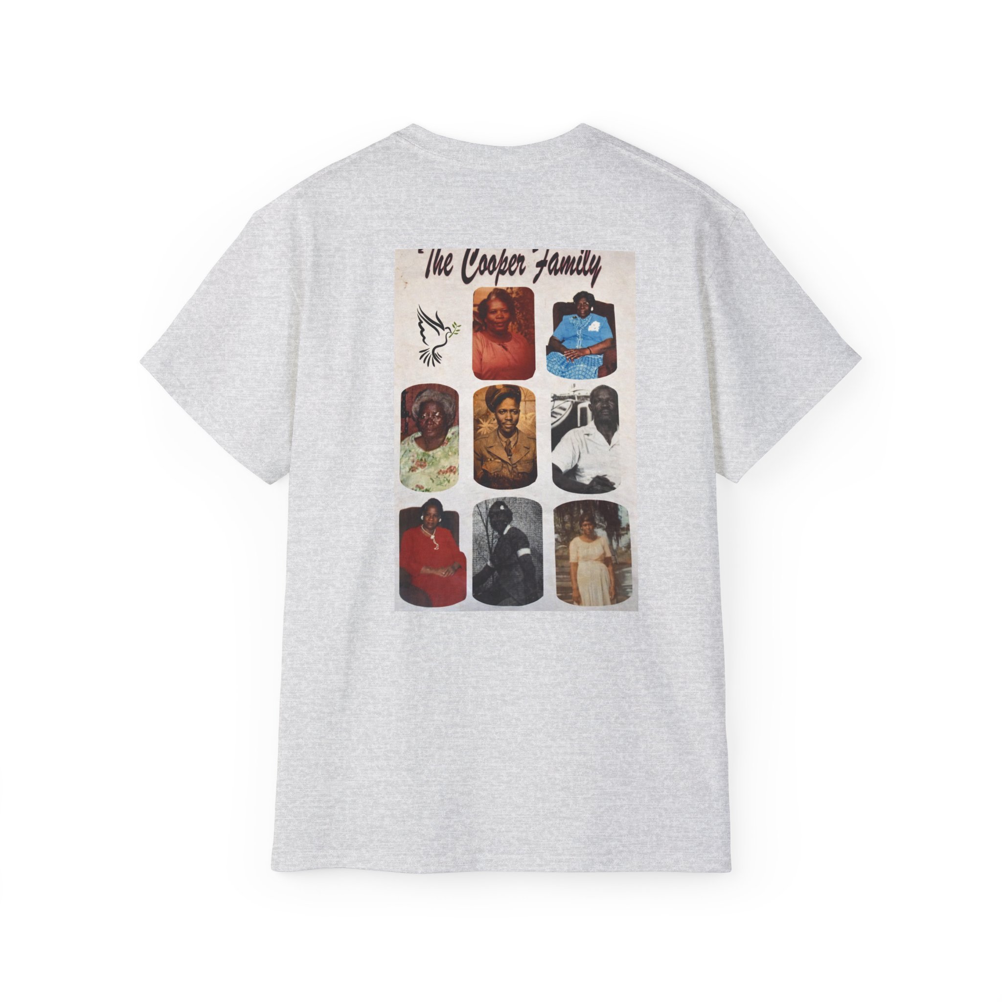 This design honors the Cooper family and the generations that helped shape its story. The back of the shirt features a collection of cherished family photographs representing loved ones whose lives, memories, and values continue to bring the family together.