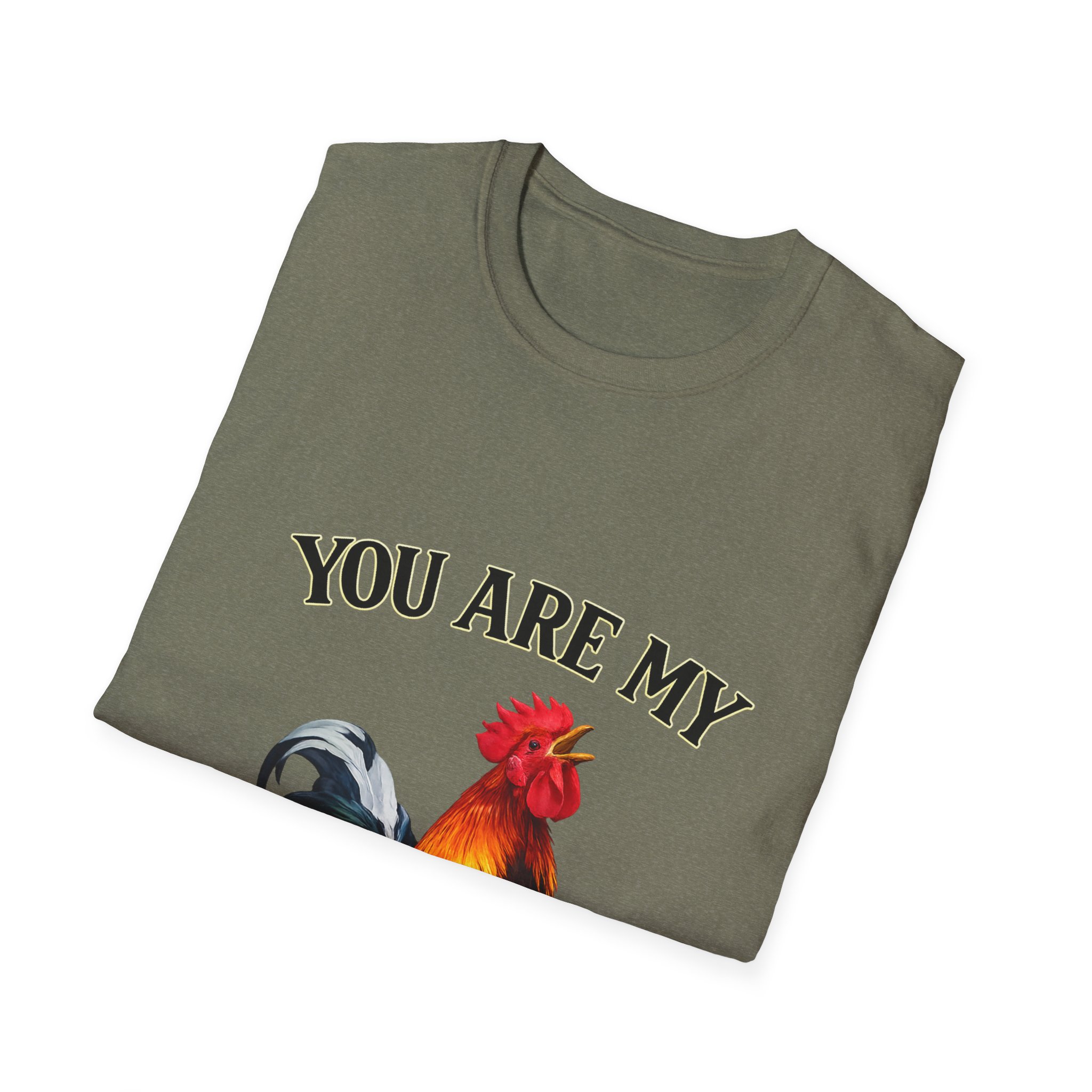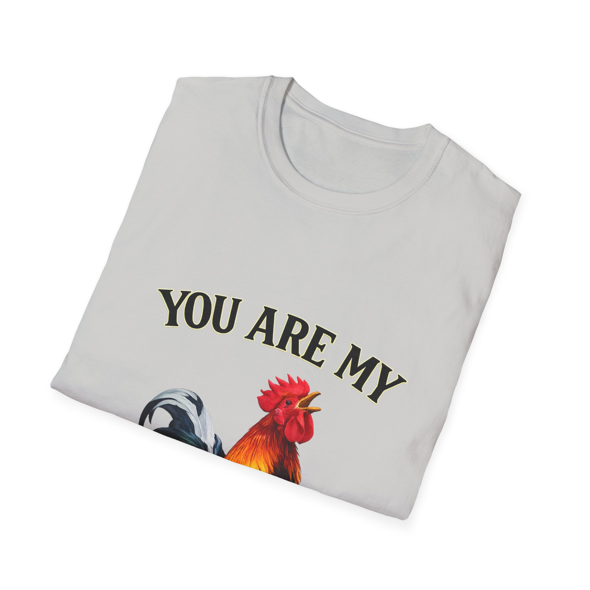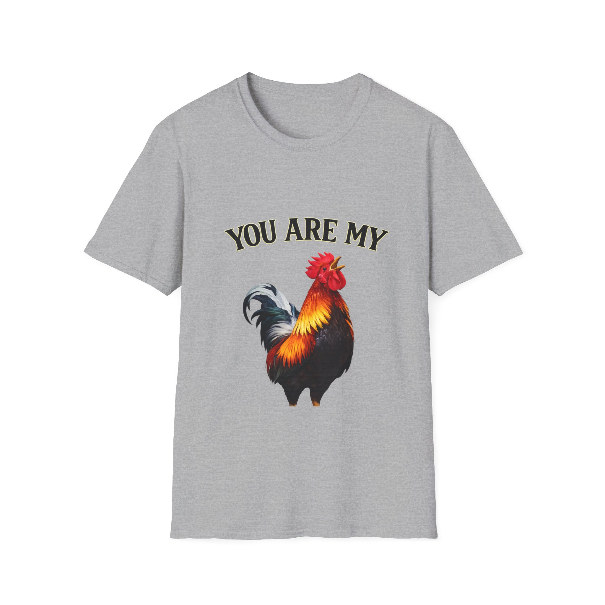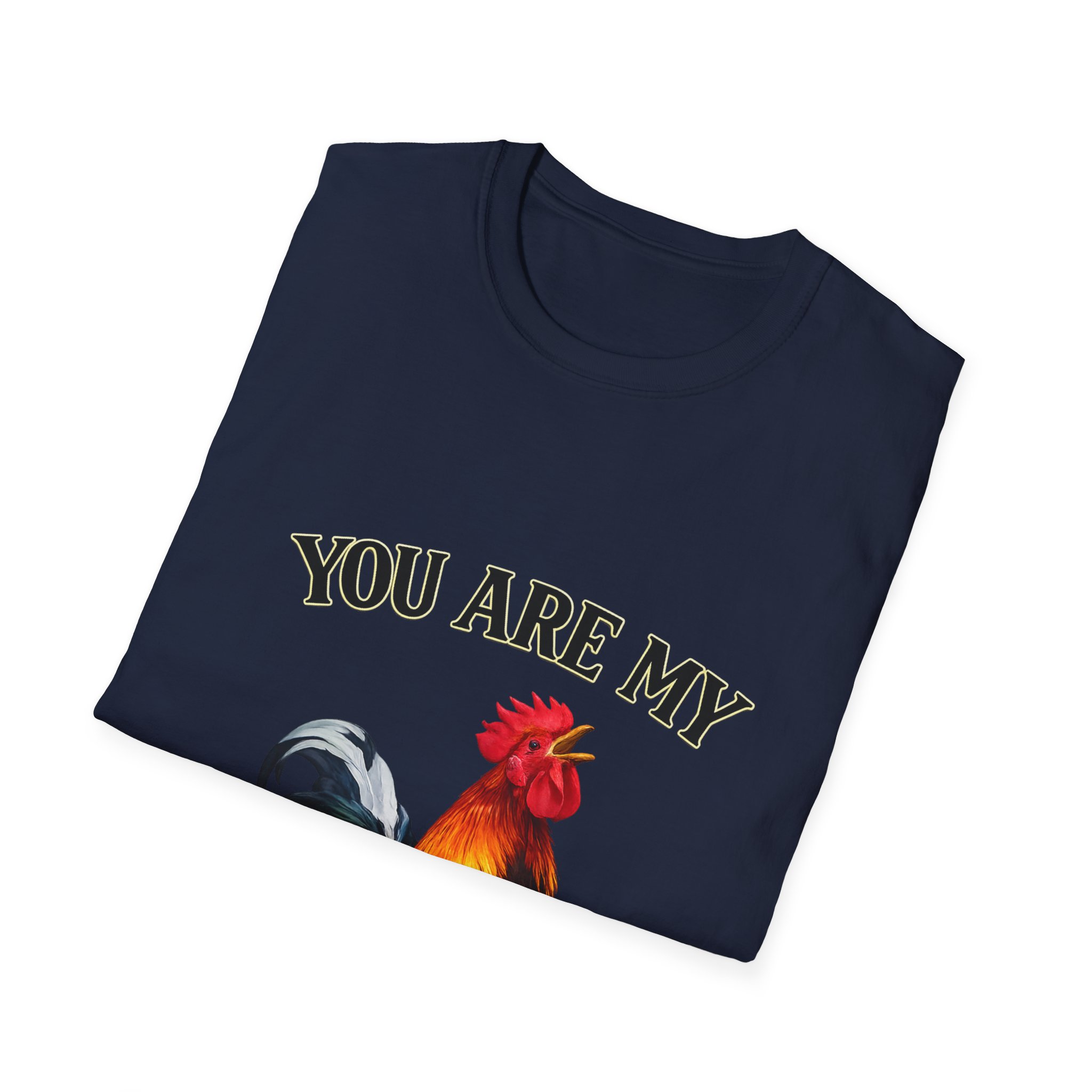 This lightweight crewneck tee wears like a quiet shout — soft, breathable cotton with a bold rooster illustration and the simple declaration: “YOU ARE MY”. It settles into mornings on the porch, market runs, and low-key weekends, pairing easily with worn jeans or layered under a jacket. The graphic has a hand-drawn, vintage farm feel that speaks to people who love country charm, farm life, or playful, slightly cheeky statements. The shirt’s clean silhouette and durable print make it a go-to for daily wear during spring and summer gatherings, casual barn dances, or cozy house visits with friends who appreciate rustic humor.