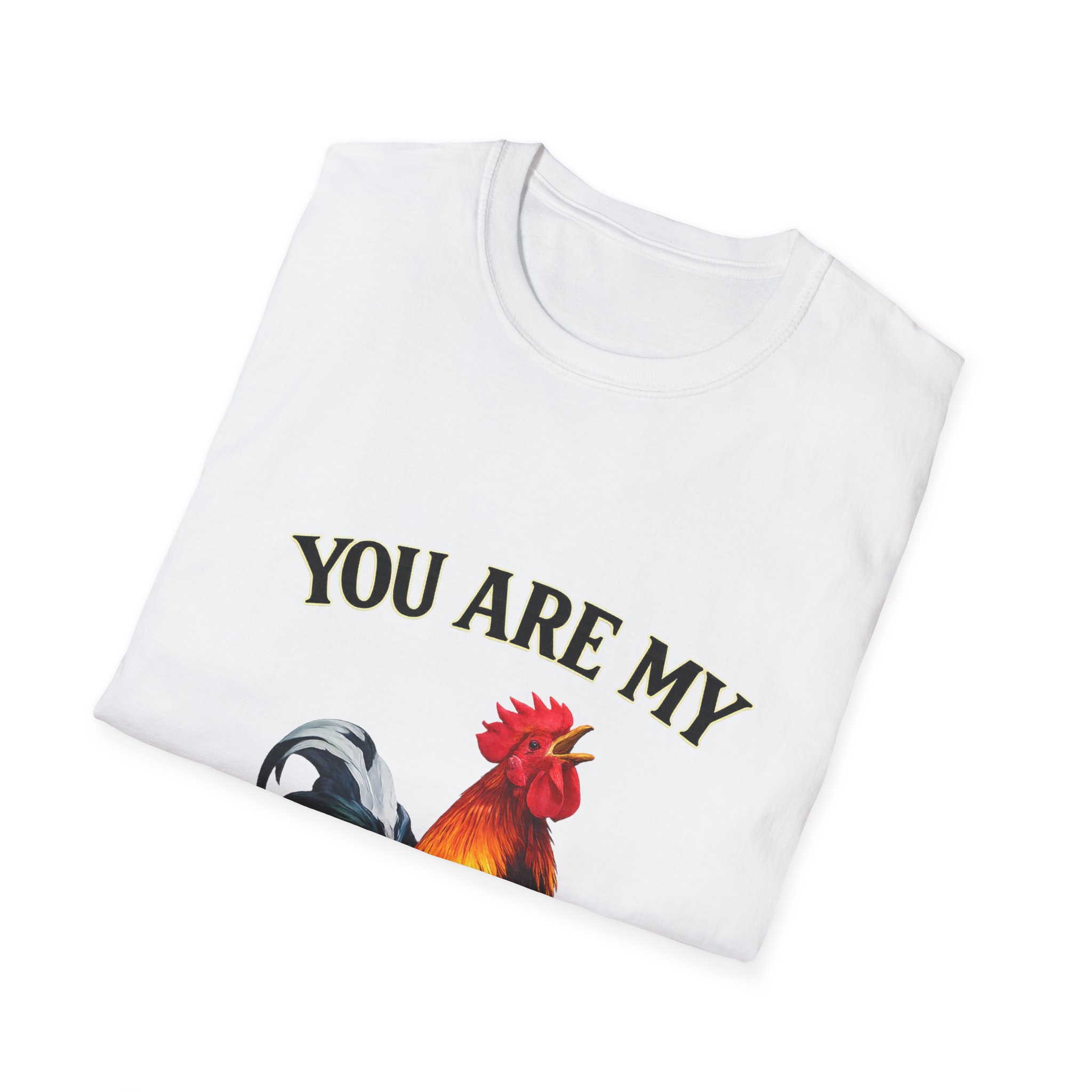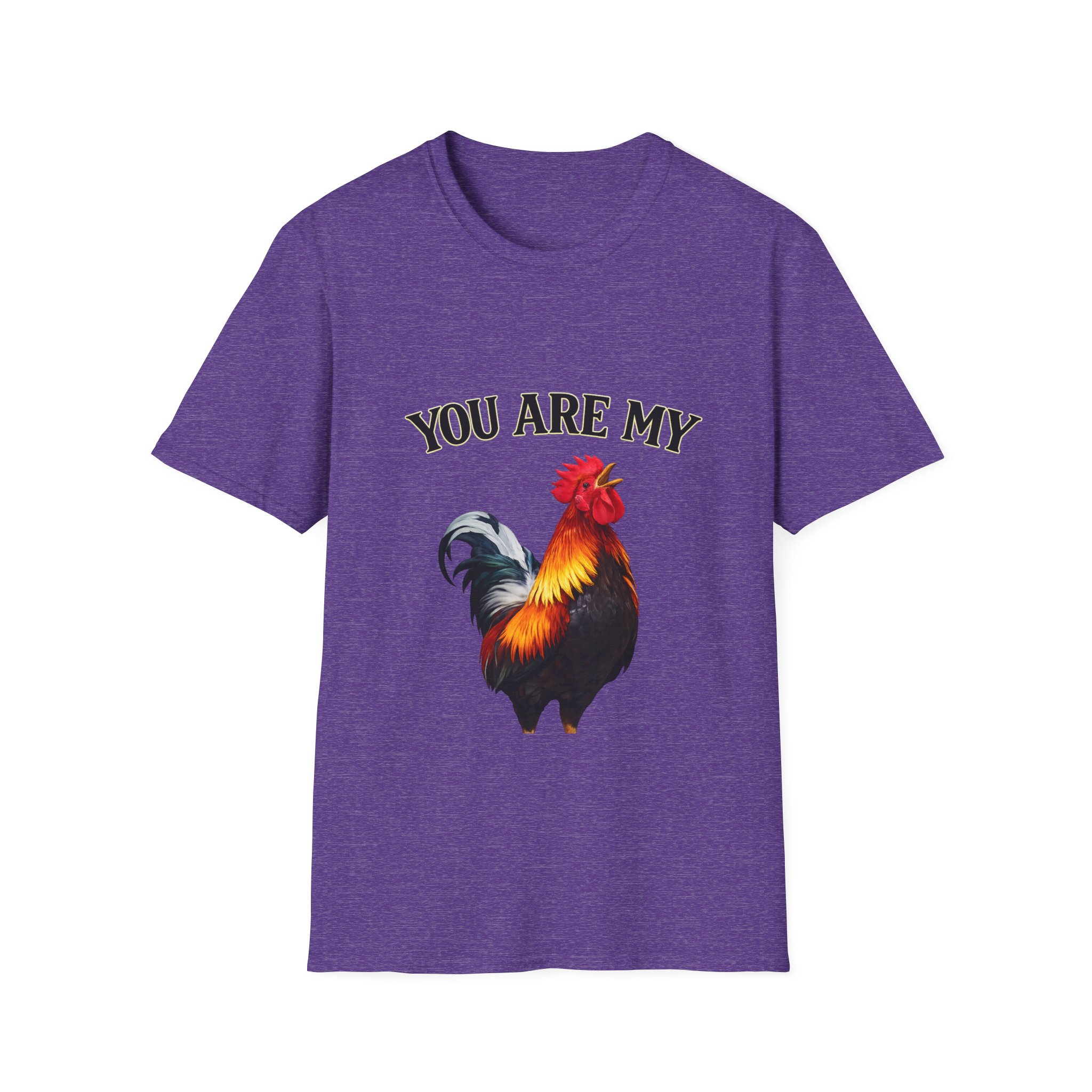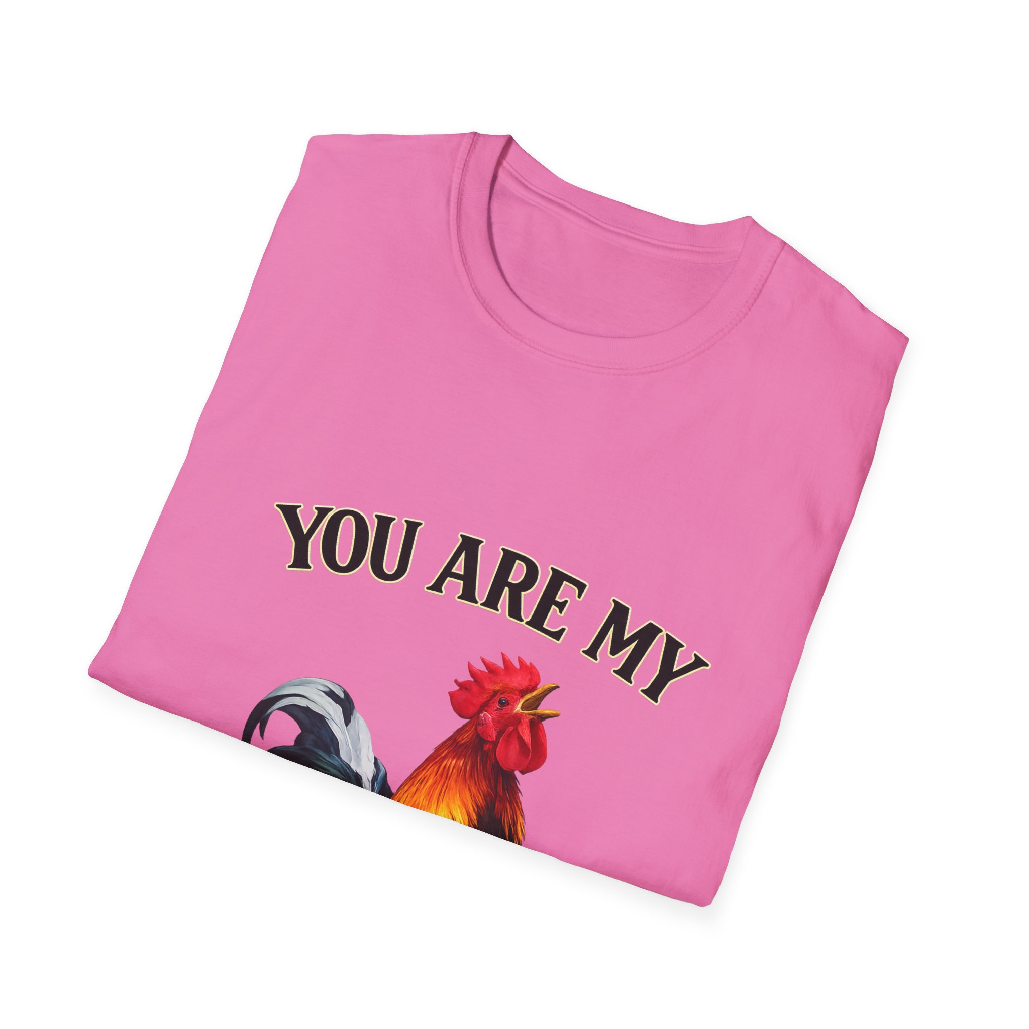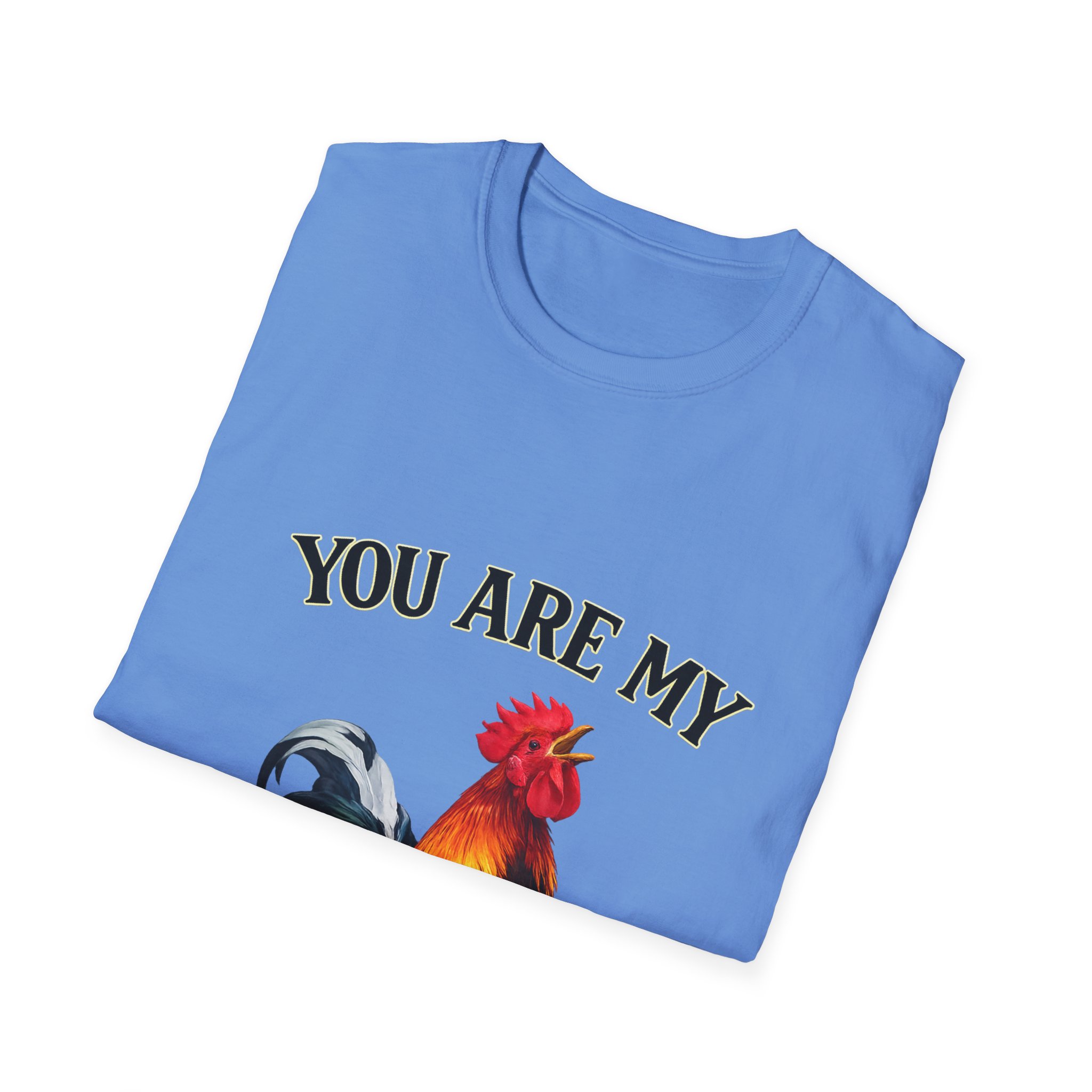 This lightweight crewneck tee wears like a quiet shout — soft, breathable cotton with a bold rooster illustration and the simple declaration: “YOU ARE MY”. It settles into mornings on the porch, market runs, and low-key weekends, pairing easily with worn jeans or layered under a jacket. The graphic has a hand-drawn, vintage farm feel that speaks to people who love country charm, farm life, or playful, slightly cheeky statements. The shirt’s clean silhouette and durable print make it a go-to for daily wear during spring and summer gatherings, casual barn dances, or cozy house visits with friends who appreciate rustic humor.