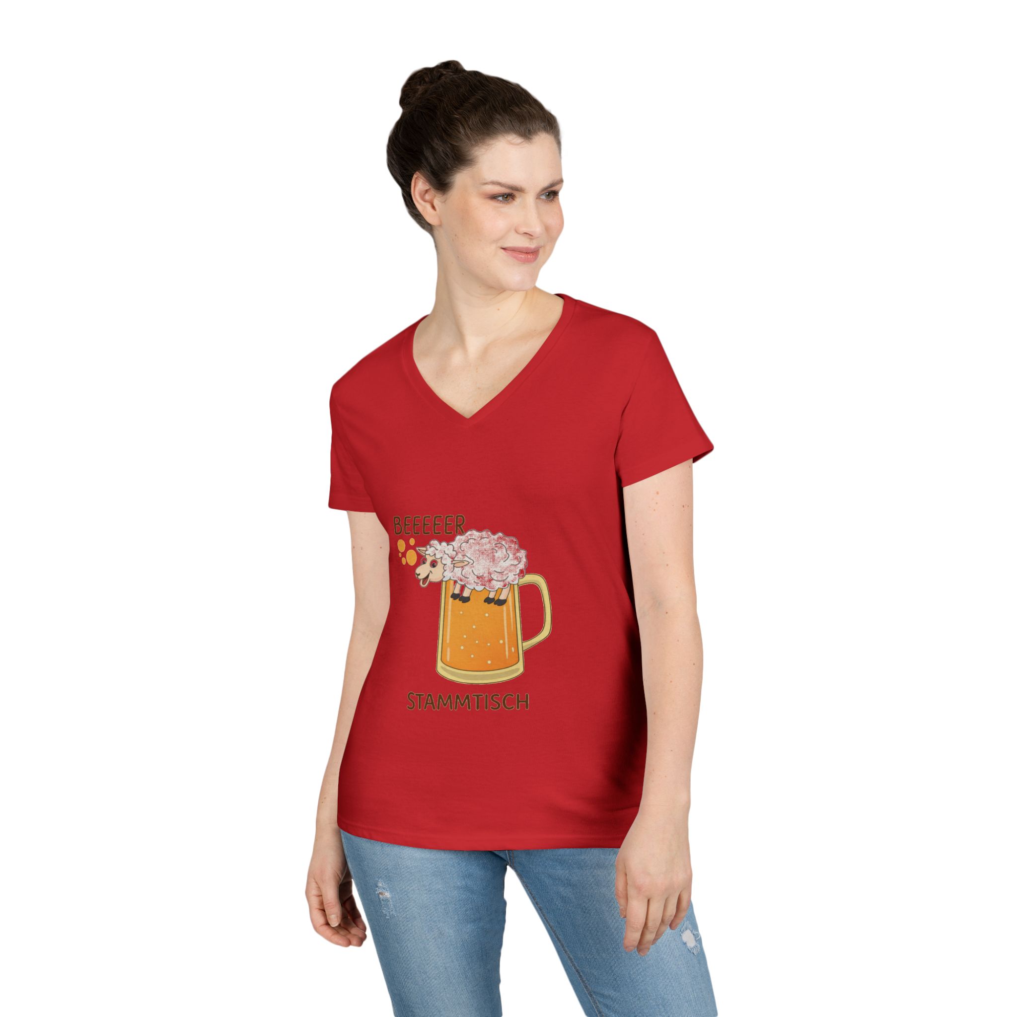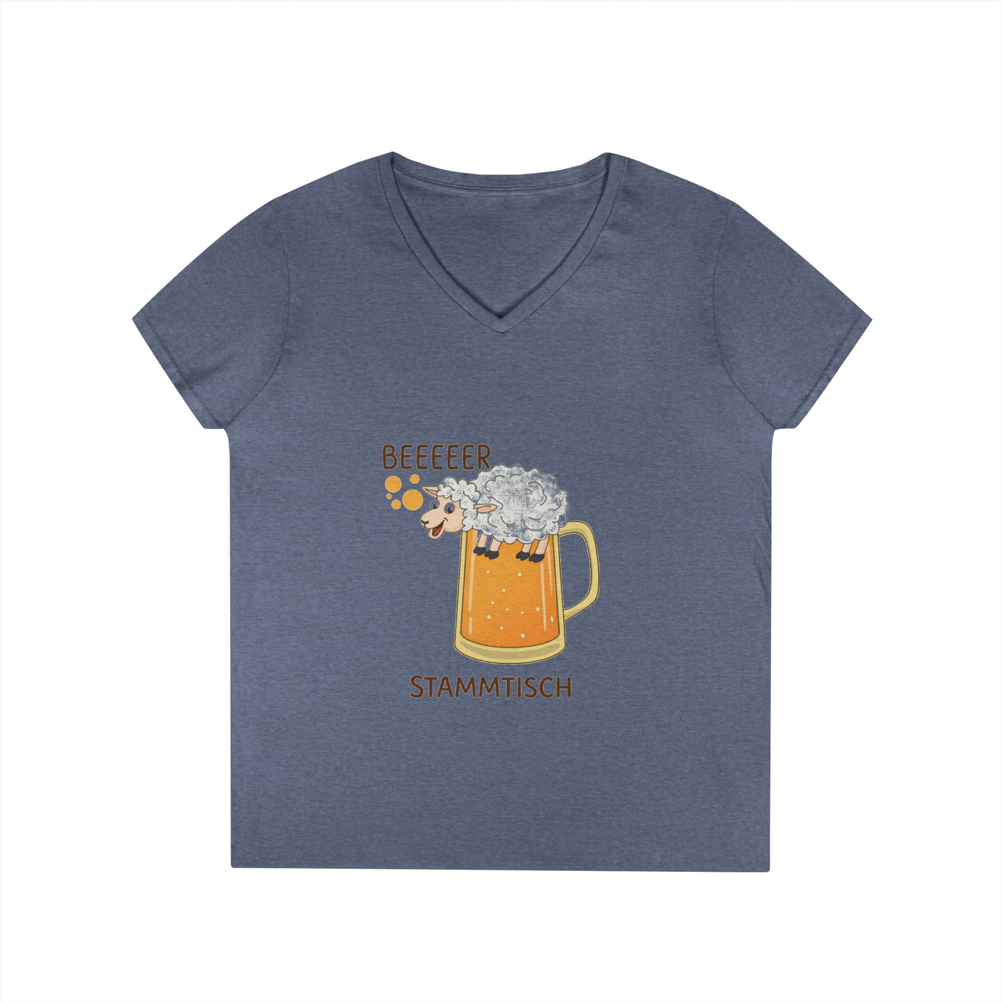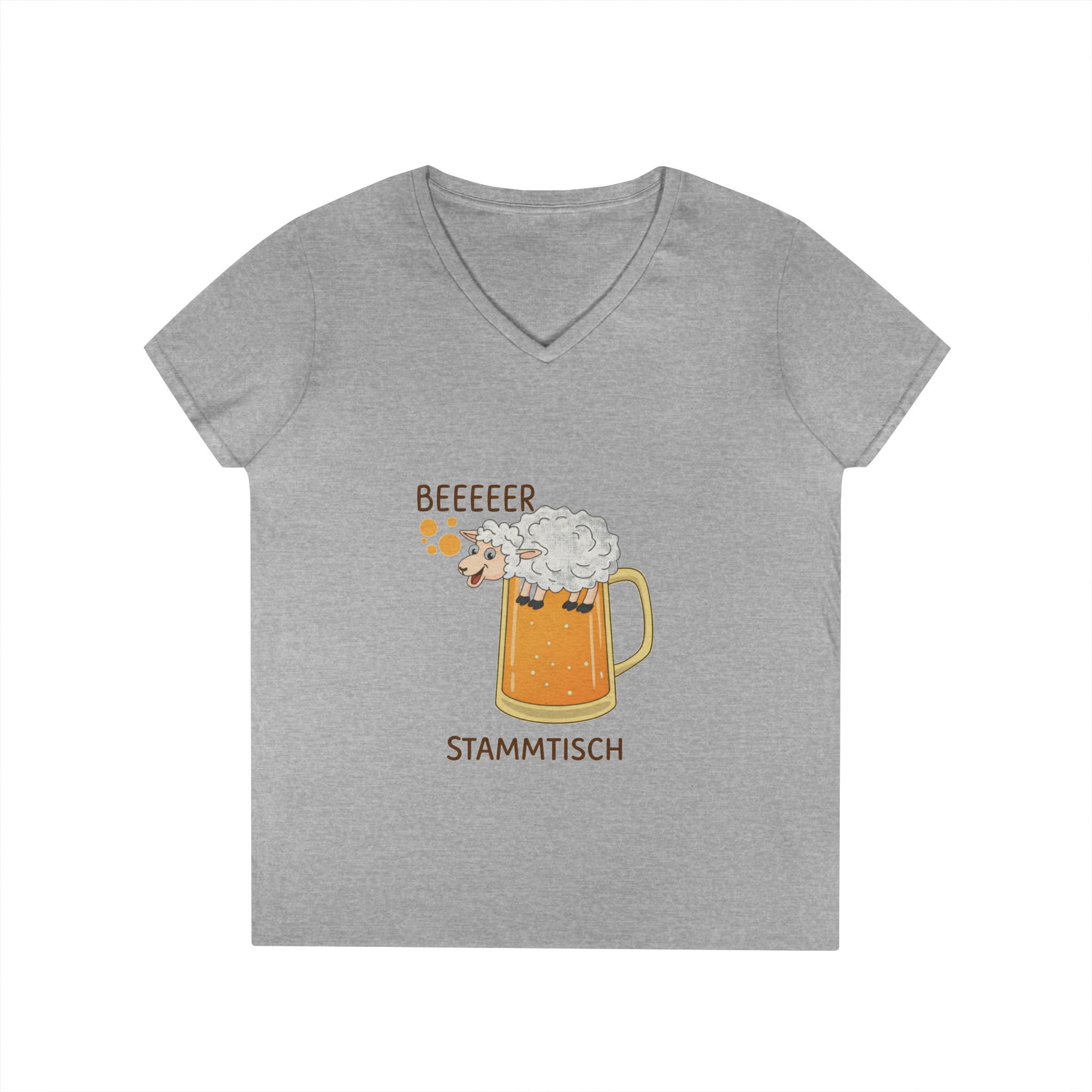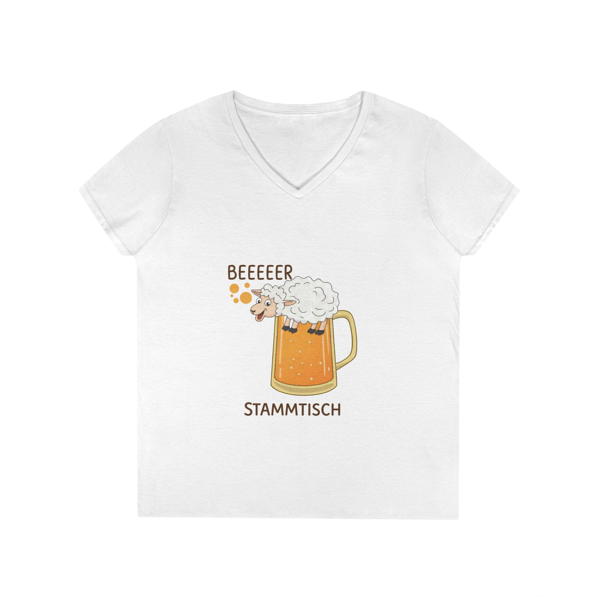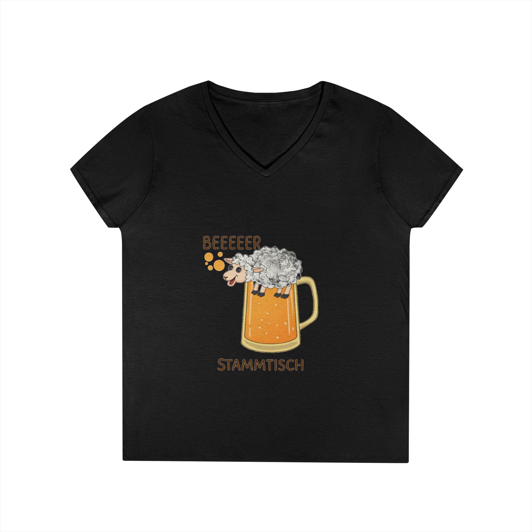 Lightweight and soft, this ladies’ V-neck brings a playful, cozy vibe to casual days. A hand-drawn sheep naps atop a frothy beer mug, with the cheeky text “BEEEER” and “STAMMTISCH” beneath — a wink to friendly pub gatherings and long-night laughter. The semi-fitted cut flatters without clinging. Medium-weight 100% cotton keeps the tee breathable and durable, while the ribbed V-neck and shoulder tape preserve shape through many wears. Wear it to low-key meetups, after-work pub nights, or when you want to bring a little humor to weekend errands. It feels lived-in from the first wear and holds up wash after wash, becoming one of those soft favorites you reach for when you want comfort and a smile.
