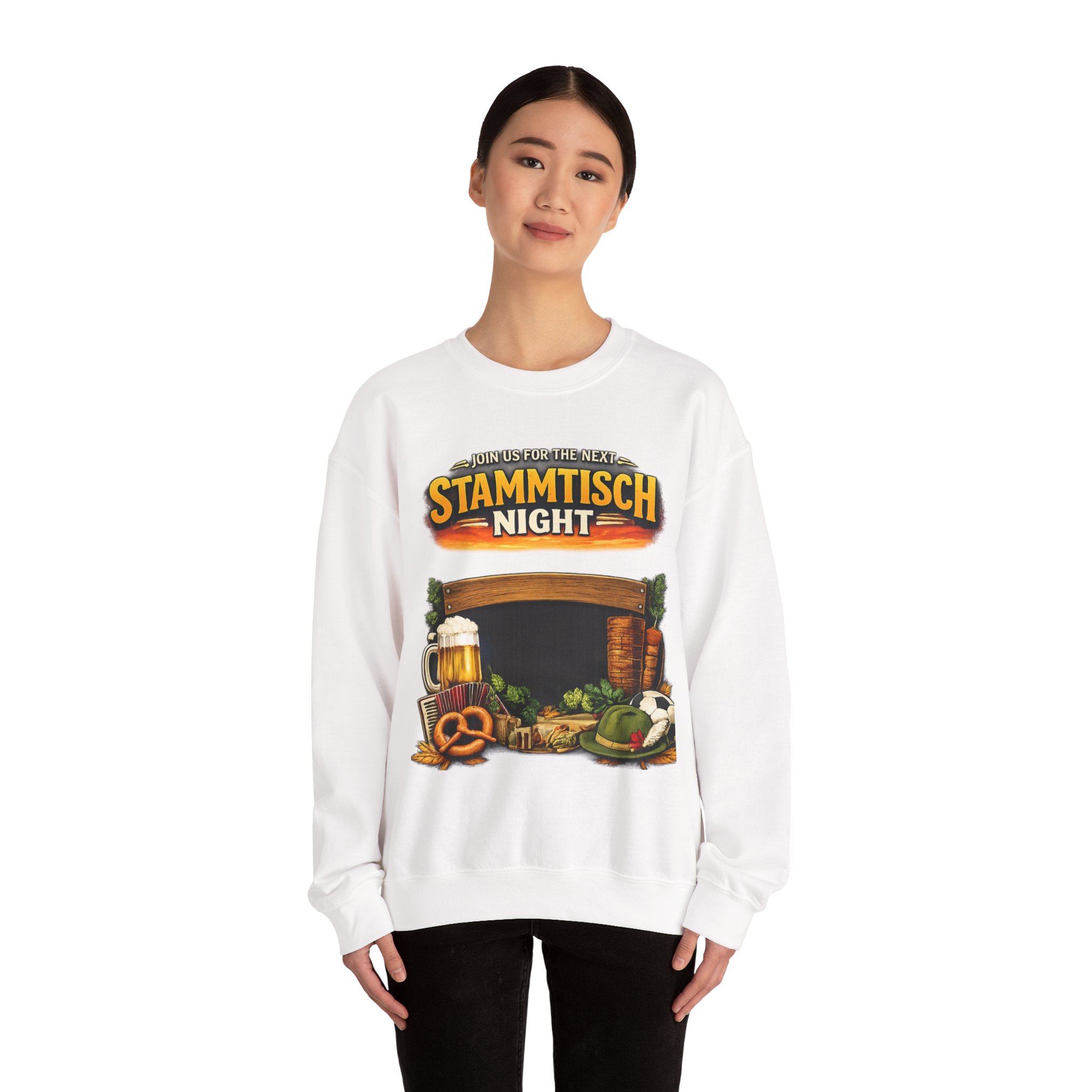 A cozy, heritage-inspired crewneck that carries the warmth of a local beer garden into your everyday wardrobe. The illustrated “Stammtisch Night” scene — full of steins, pretzels, a wooden table, and rustic greenery — sits bold on a soft, medium-heavy sweatshirt. Wear it on cool evenings when conversation runs late, on casual meetups at your favorite pub, or tucked into layered looks for a relaxed weekend. The classic fit and ribbed collar keep the silhouette clean while embroidered options (left, center, or large chest and wrists) add textured detail that ages beautifully. Ethically sourced cotton and OEKO-TEX dyes mean comfort you can feel good about, and a tear-away label keeps the neck itch-free. This sweatshirt settles into your rotation as the one you reach for when you want to feel at home, even when you’re out with friends.