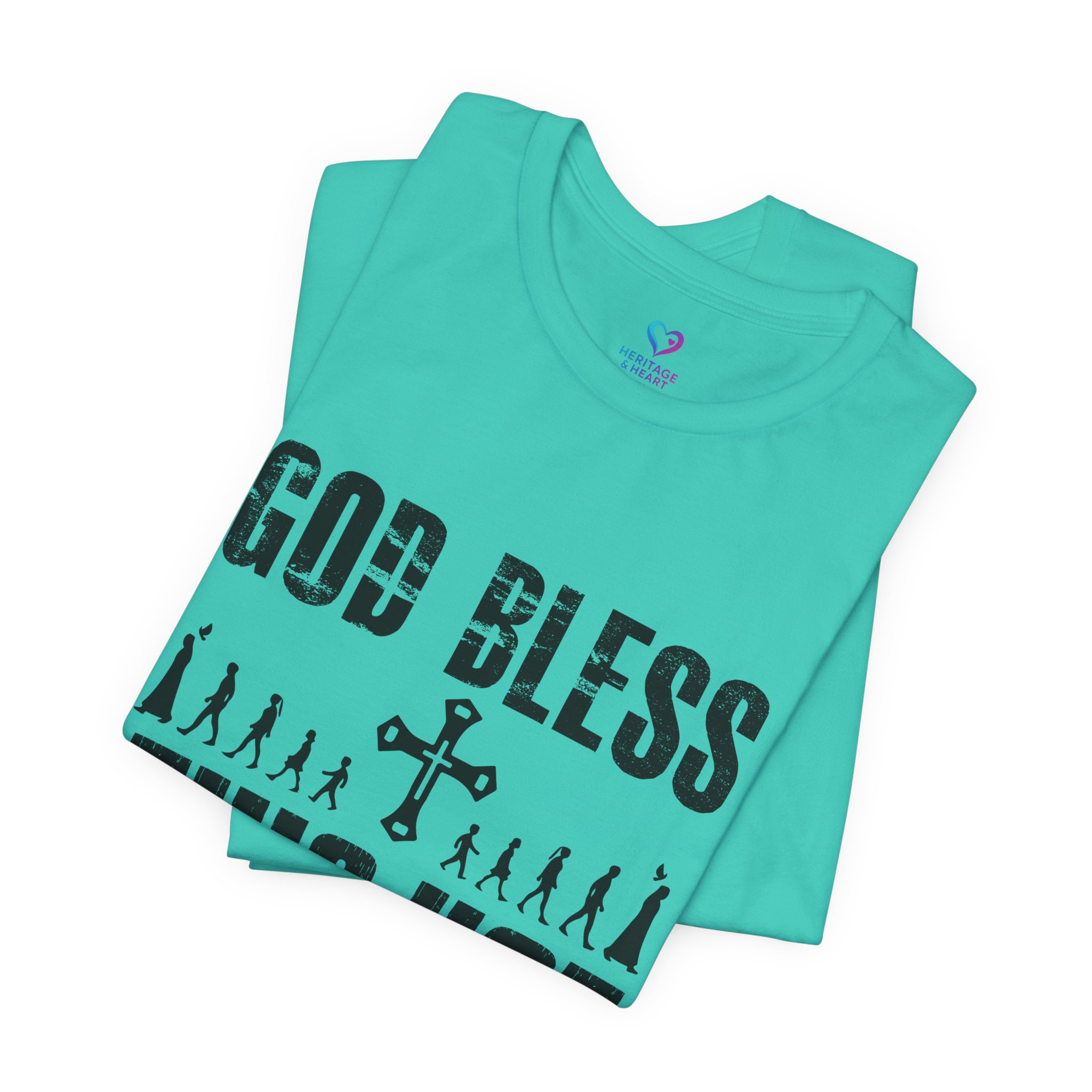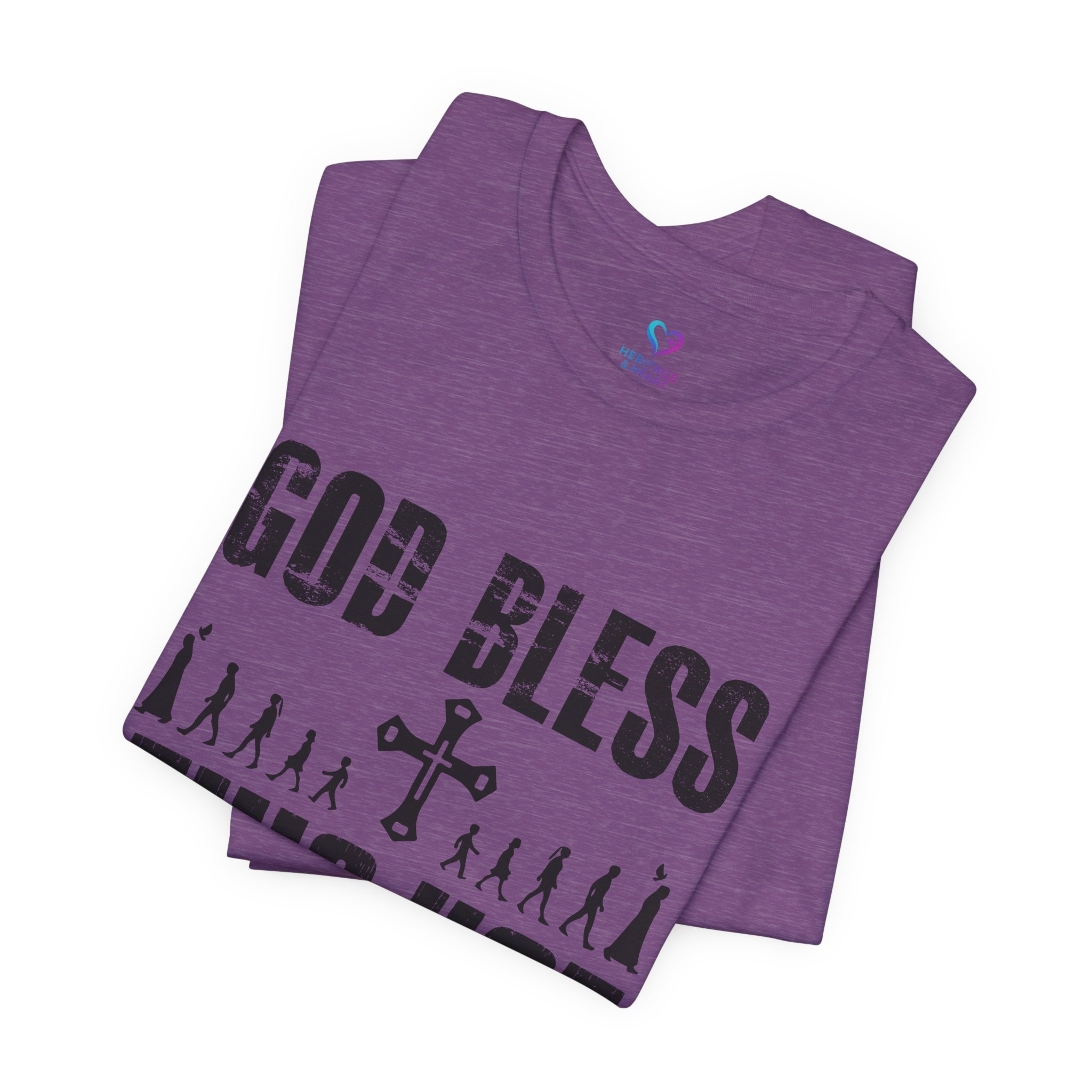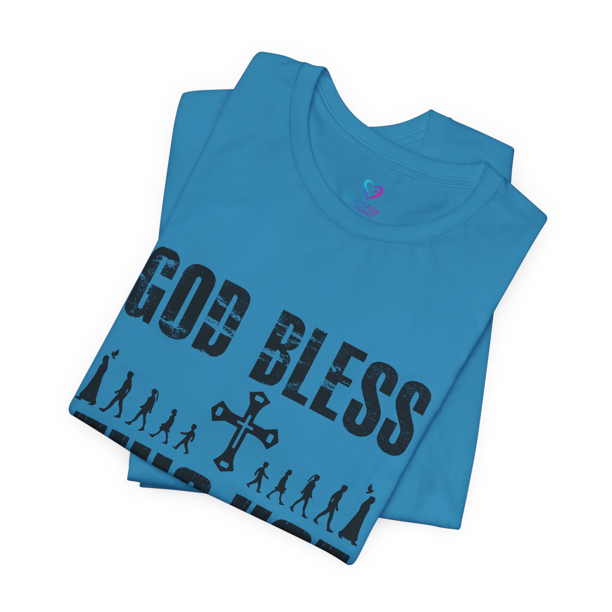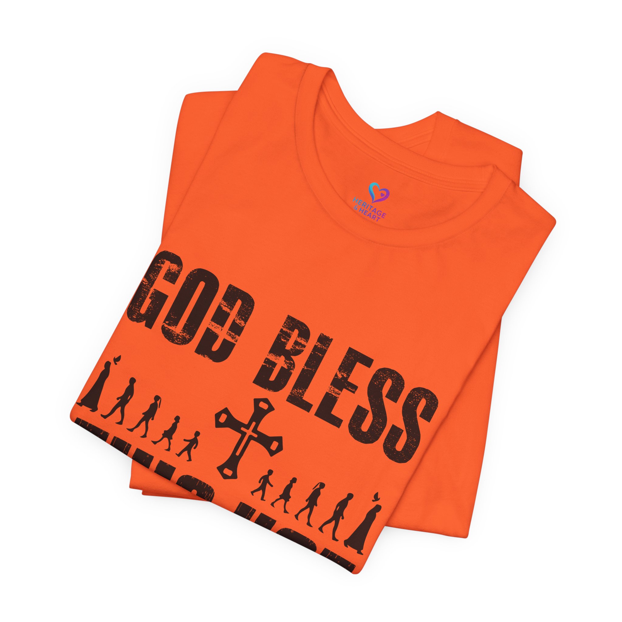 Lightweight, breathable tee with bold, playful typography that reads “God Bless This Hot Mess.” The clean white canvas and distressed black print give it a casual, lived-in look — comfortable for everyday wear and easy to layer. The message lands with humor and honesty, making it a standout piece for relaxed gatherings, weekend errands, or low-key church events where a little self-deprecating wit goes a long way. Soft on the skin and built to keep shape, this shirt wears like an old favorite from the first wash.