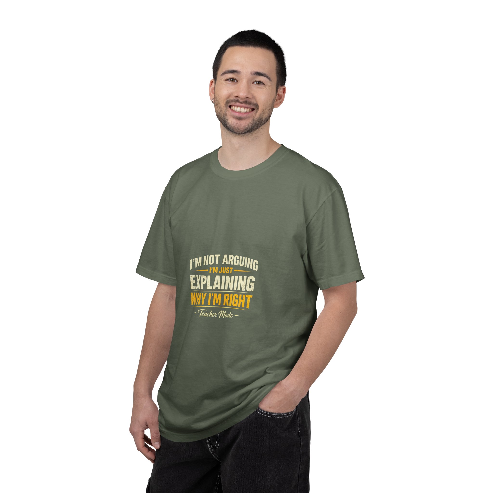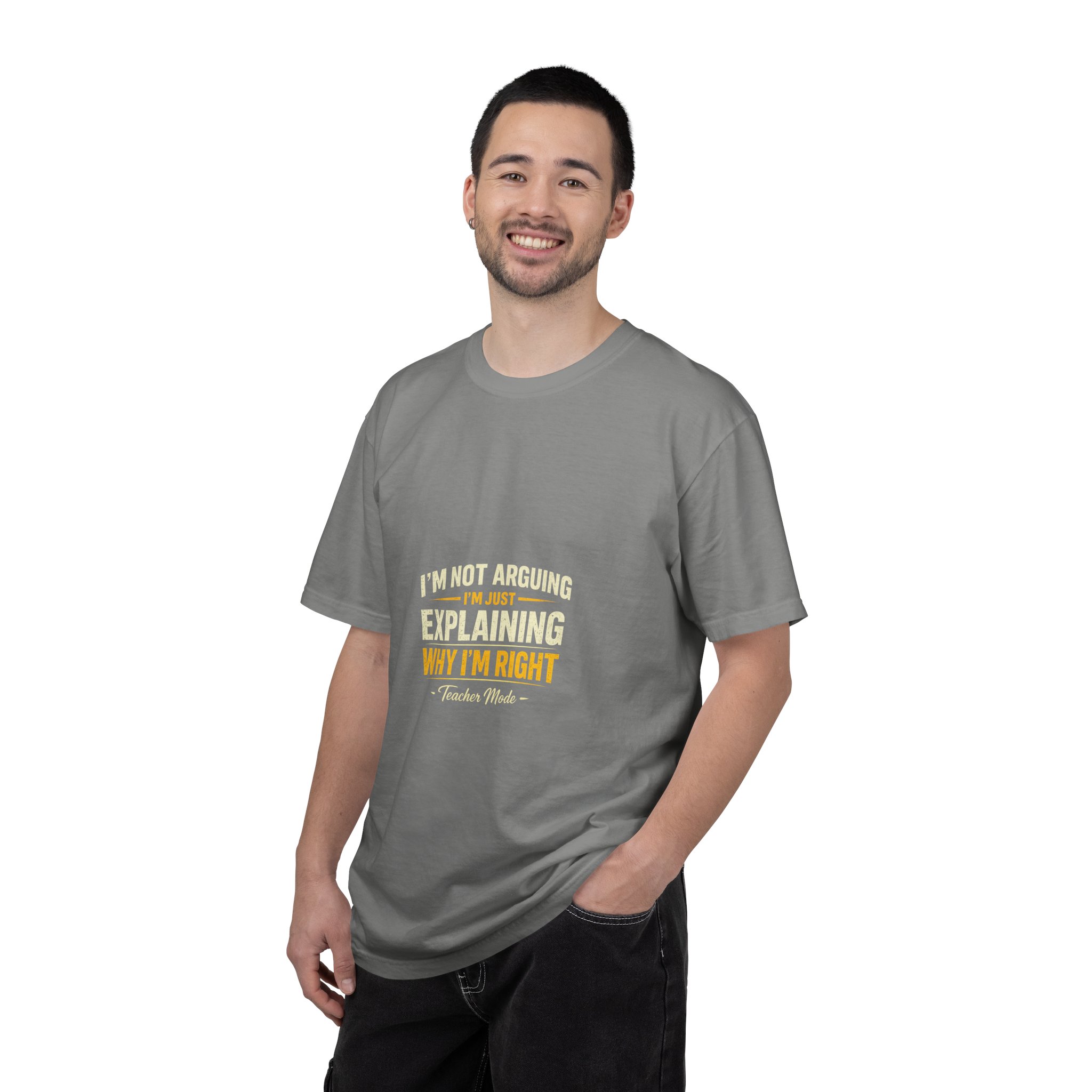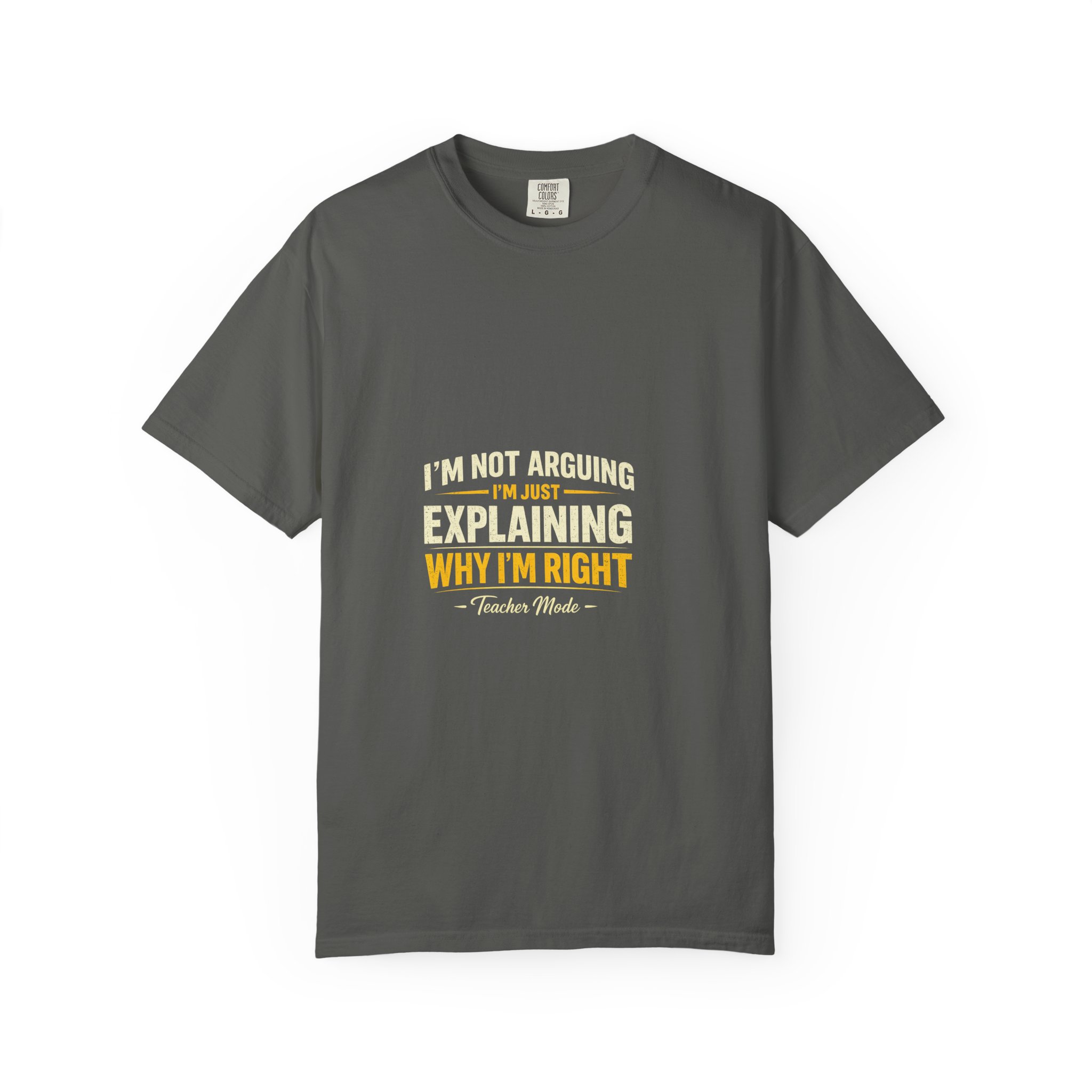 Soft, worn-in cotton that settles against your skin like something you’ve owned for years. This garment-dyed tee has a relaxed, heavyweight feel and a subtle, faded print across the chest that reads with a quiet wink — confident but low-key. It lives in the rotation you reach for when you want to look put-together without trying: coffee runs, late-night debates, or a backyard hangout where the shirt does the talking so you don’t have to. The tubular knit and double-needle stitching mean it keeps shape and softens with each wash, while the sewn-in label and pre-shrunk fabric make care simple. Comes in many colors and sizes so you can pick a shade that fits your mood and wear it until it becomes part of you.