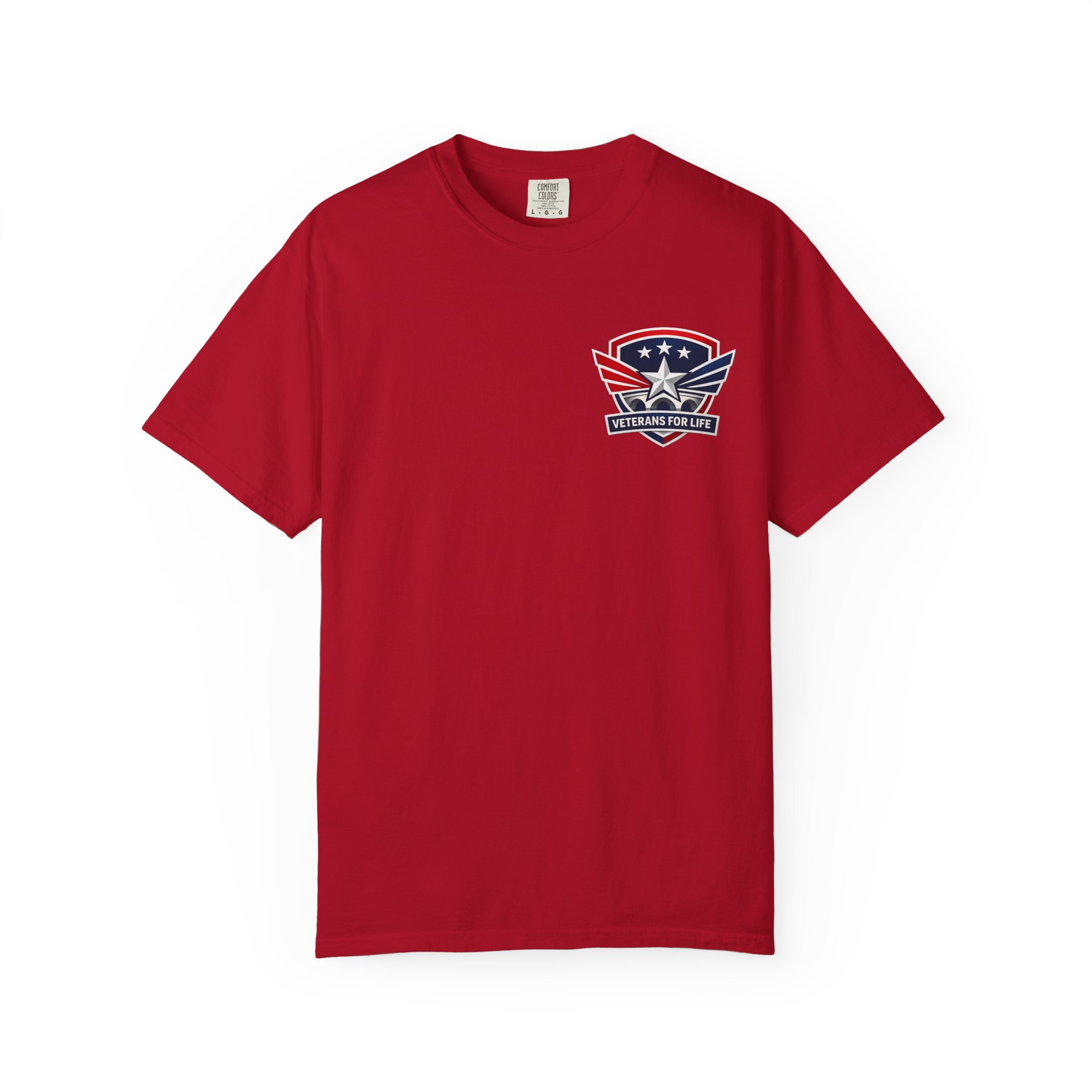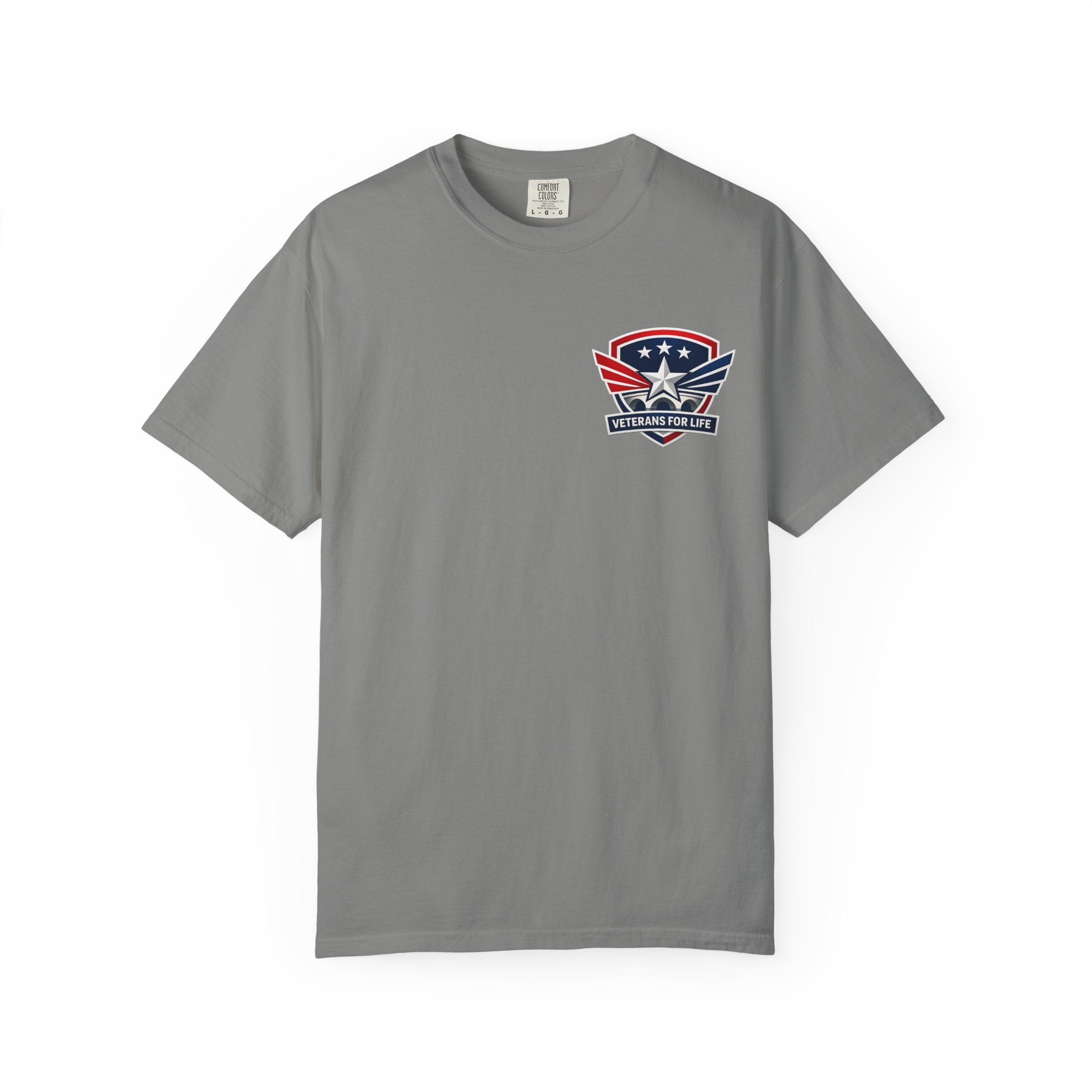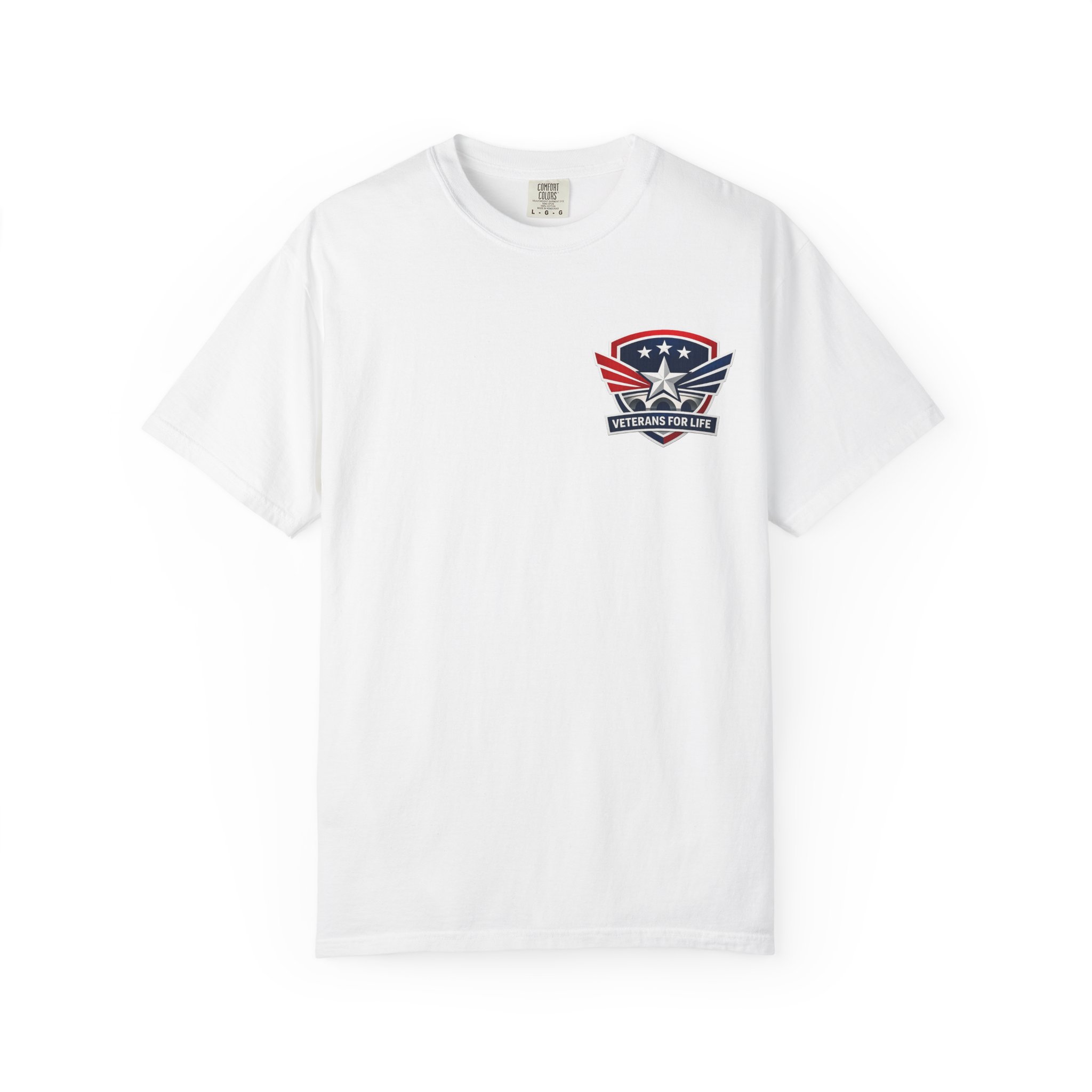 This garment-dyed cotton tee carries a quietly confident Americana vibe — soft to the touch with a lived-in color and a small star-and-wing emblem over the heart. The heavyweight knit and relaxed cut sit comfortably through long days outdoors or casual weekends at home. It washes and wears like a favorite: pre-shrunk, durable double-needle seams, and a tubular construction that keeps the silhouette clean. Wear it with jeans, under a chore jacket, or layered for a low-key look that still reads patriotic and purposeful.