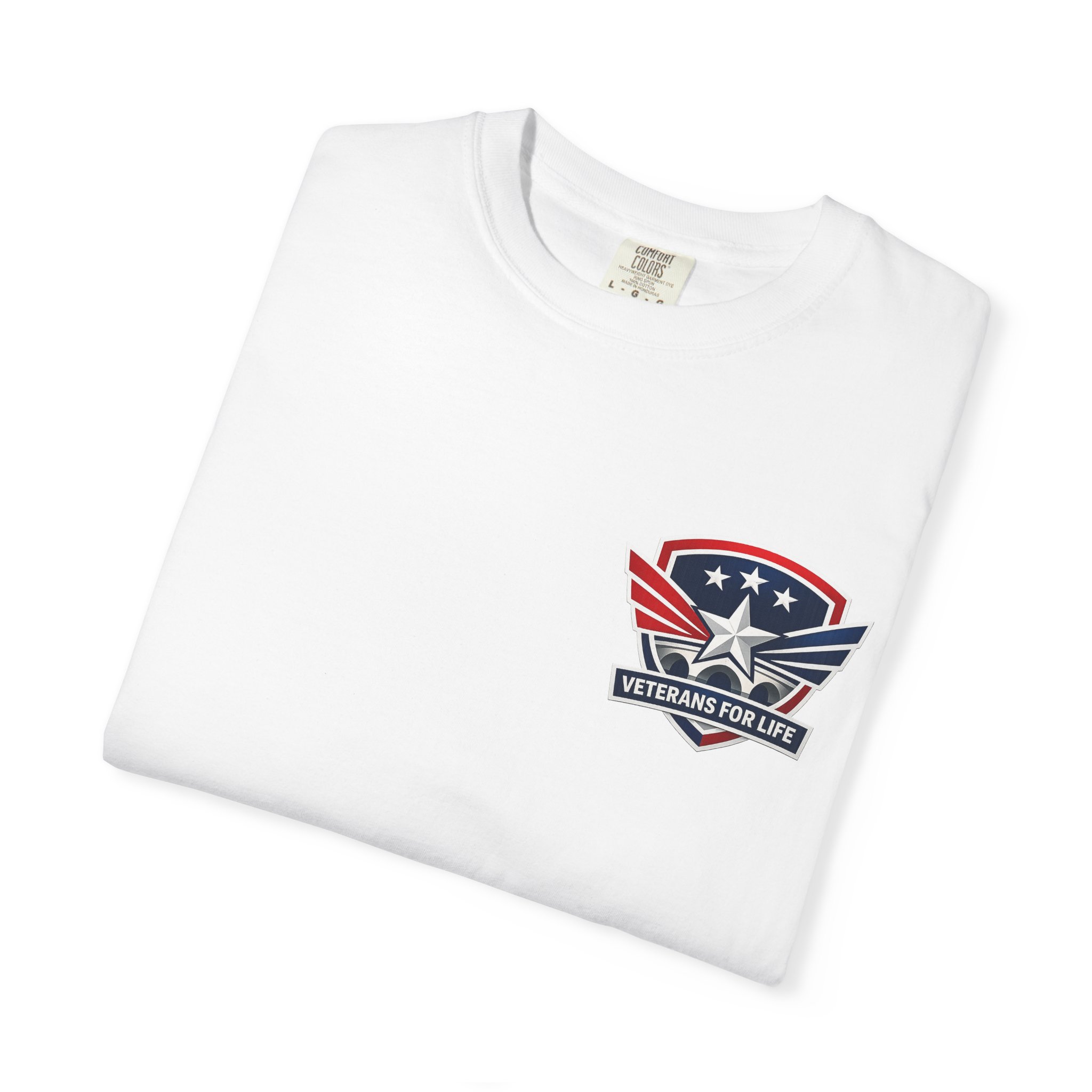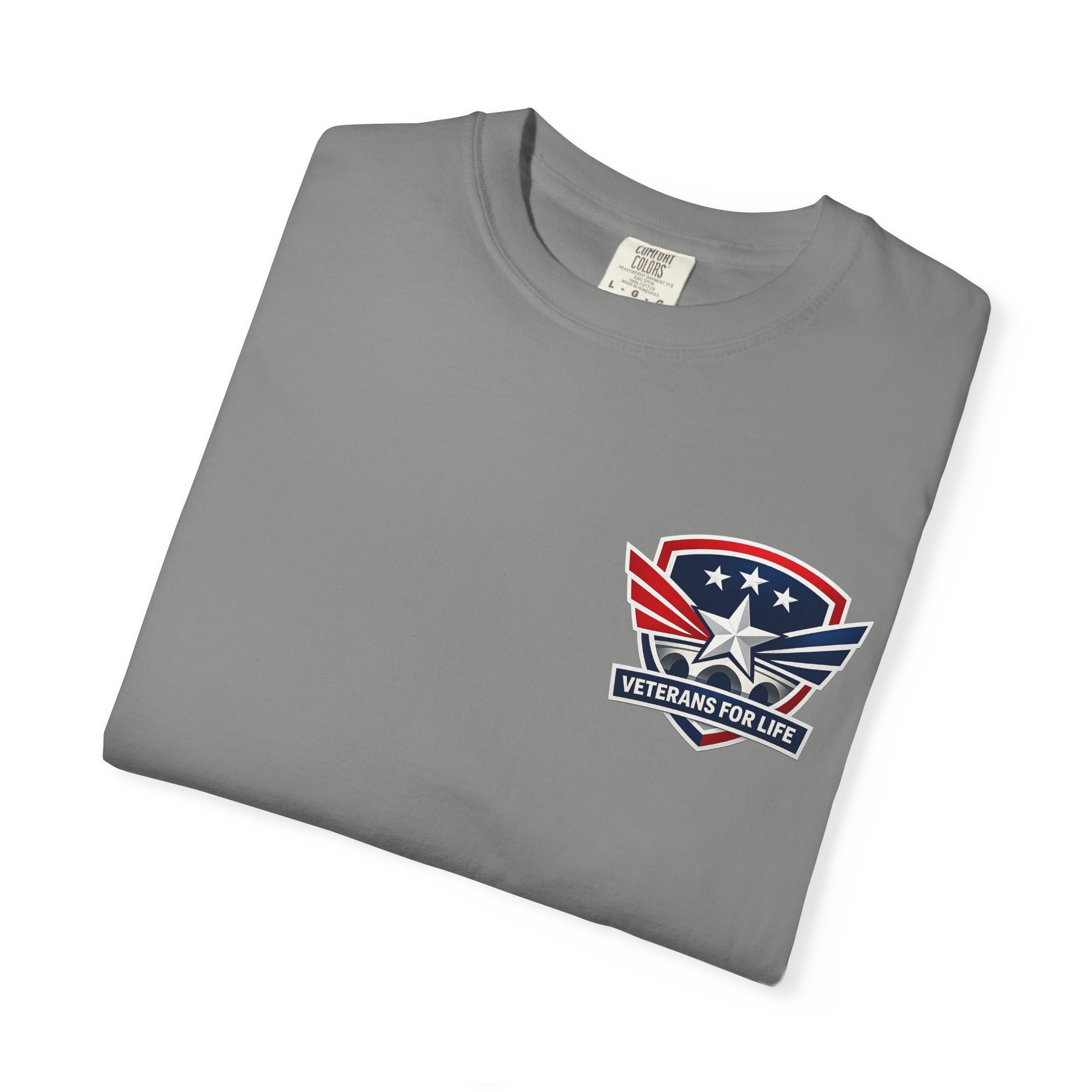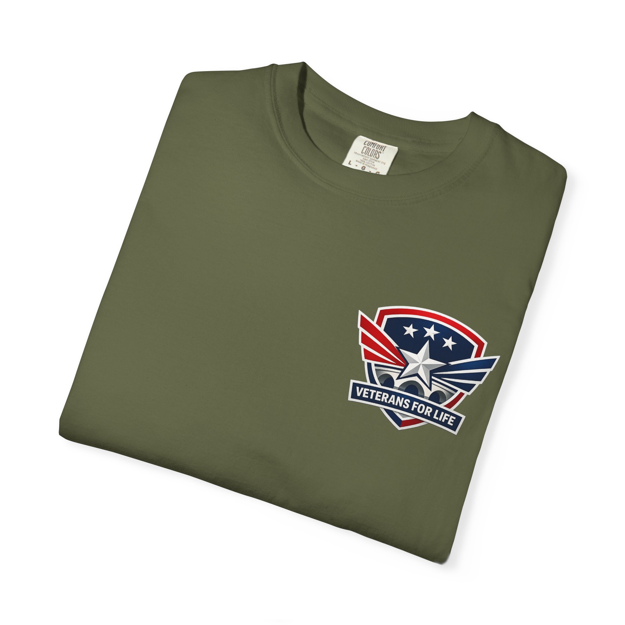 This garment-dyed cotton tee carries a quietly confident Americana vibe — soft to the touch with a lived-in color and a small star-and-wing emblem over the heart. The heavyweight knit and relaxed cut sit comfortably through long days outdoors or casual weekends at home. It washes and wears like a favorite: pre-shrunk, durable double-needle seams, and a tubular construction that keeps the silhouette clean. Wear it with jeans, under a chore jacket, or layered for a low-key look that still reads patriotic and purposeful.